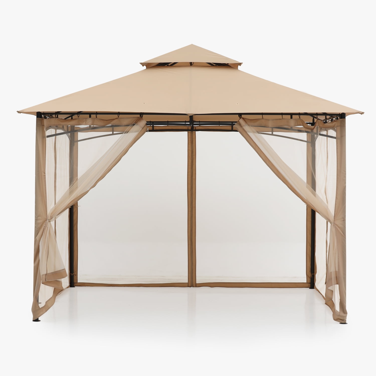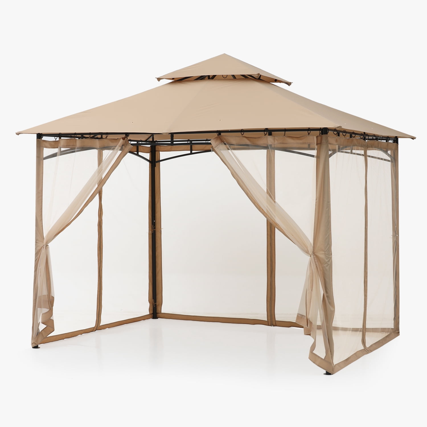 ABCCANOPY 9’x9′ Patio Gazebo With Mosquito Netting and Double Soft Roof Canopies for Shade and Rain,Khaki