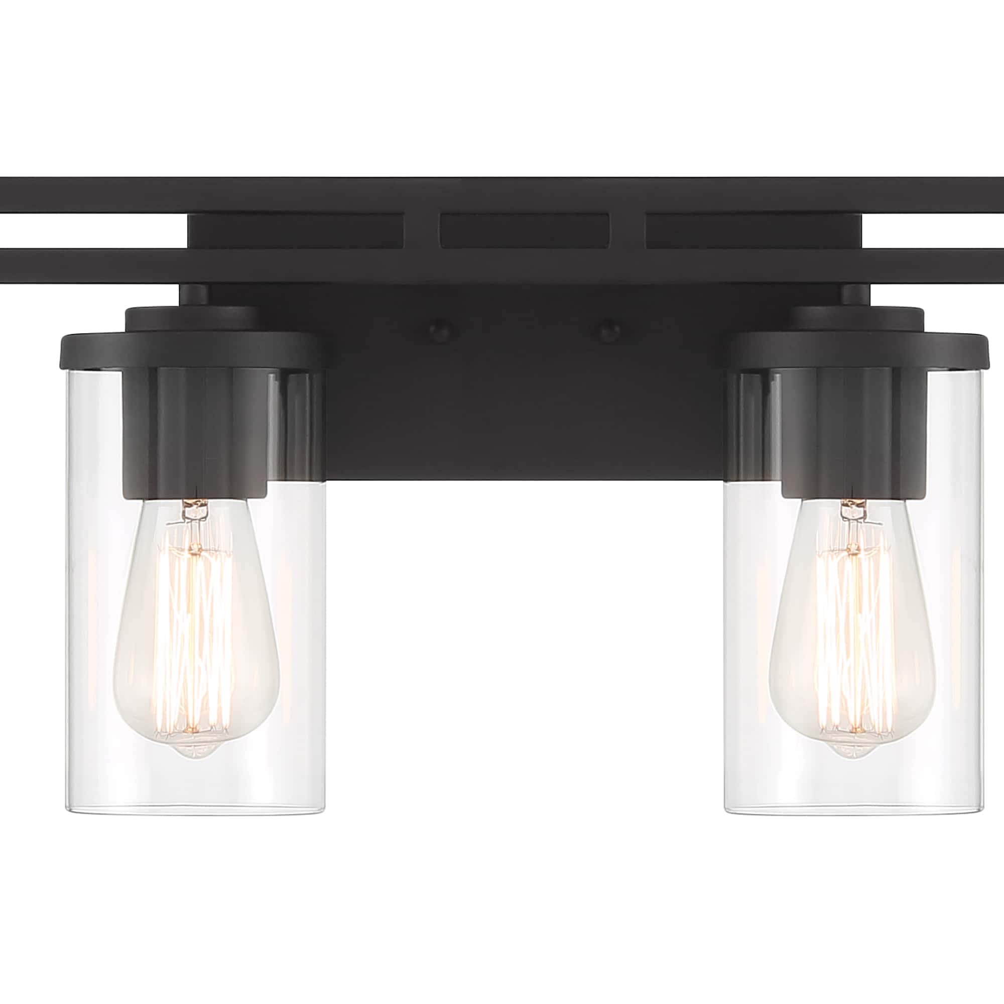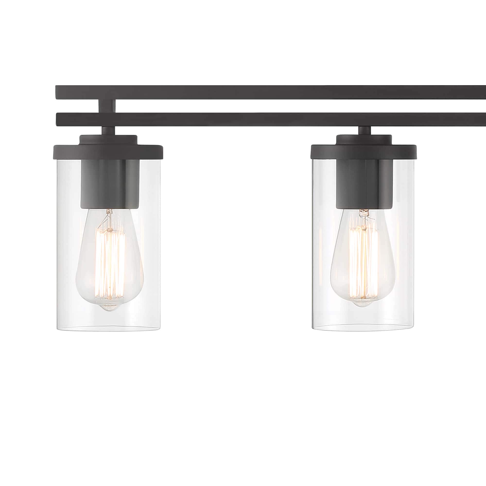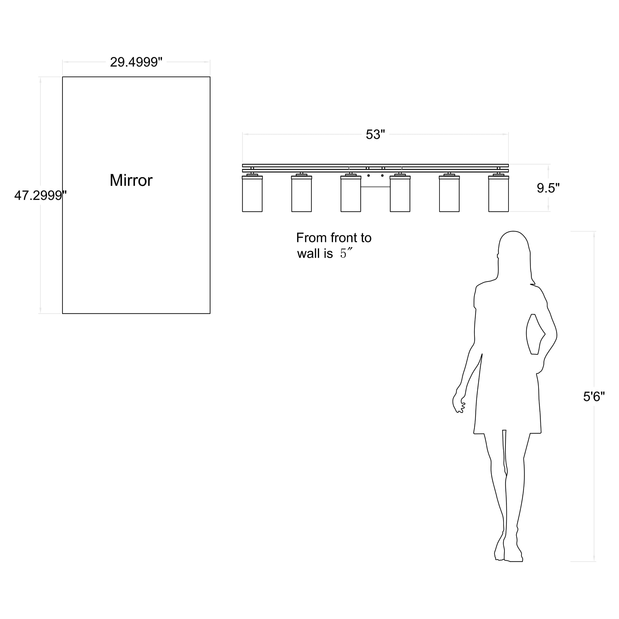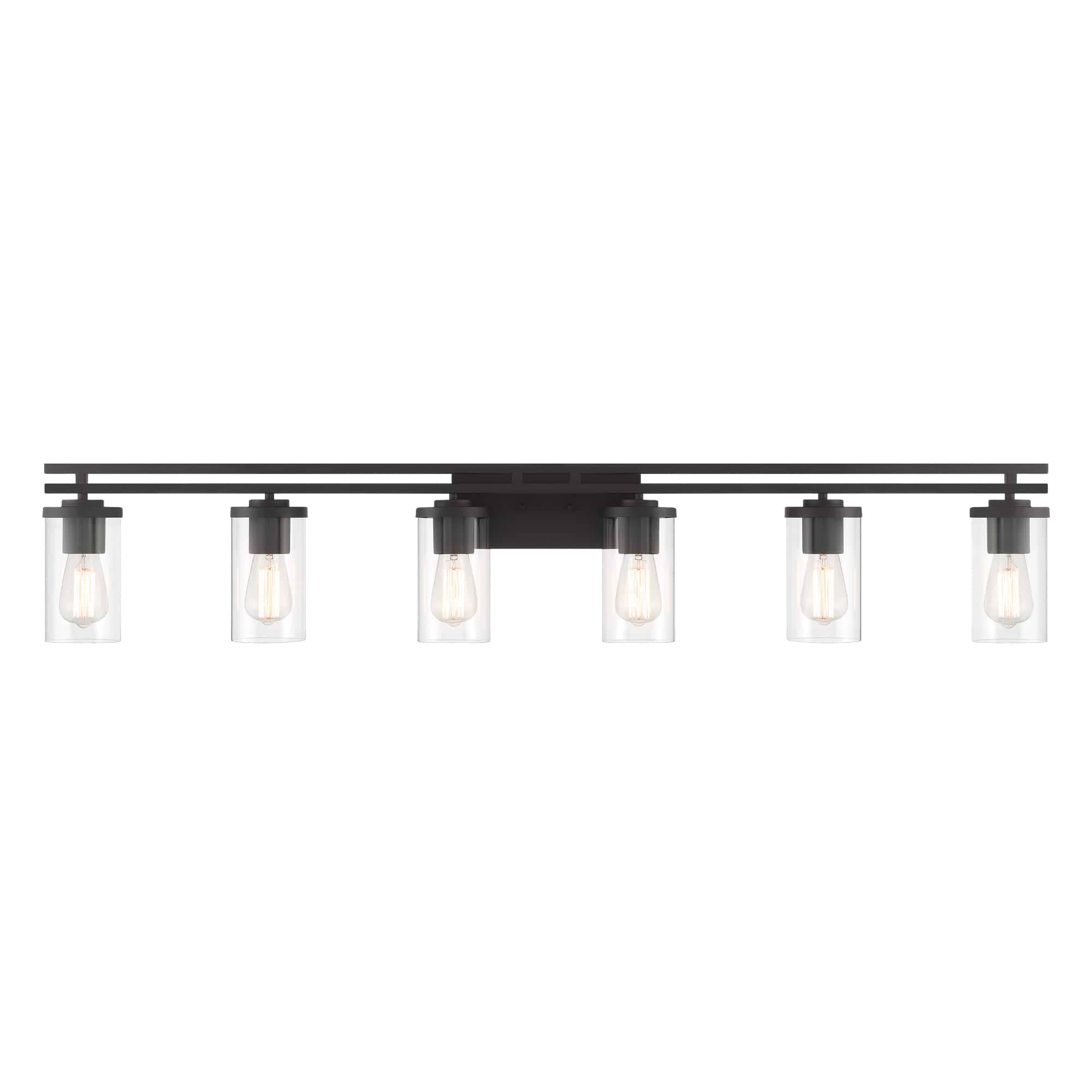 This 6-light vanity light adds an ultra modern look and a boost of brightness to your main bathroom or guest bath. It features a rectangular wall-mounting plate with double linear support bars in a sleek black finish. Made from steel, this fixture includes six clear glass, drum-shaped shades that house standard bulbs up to 60 watts each (not included). This light can be installed facing up or down, depending on your preference, and it’s dimmable for customizable ambiance. Plus, the switch type is a dimmer, allowing you to easily adjust the brightness to your liking.