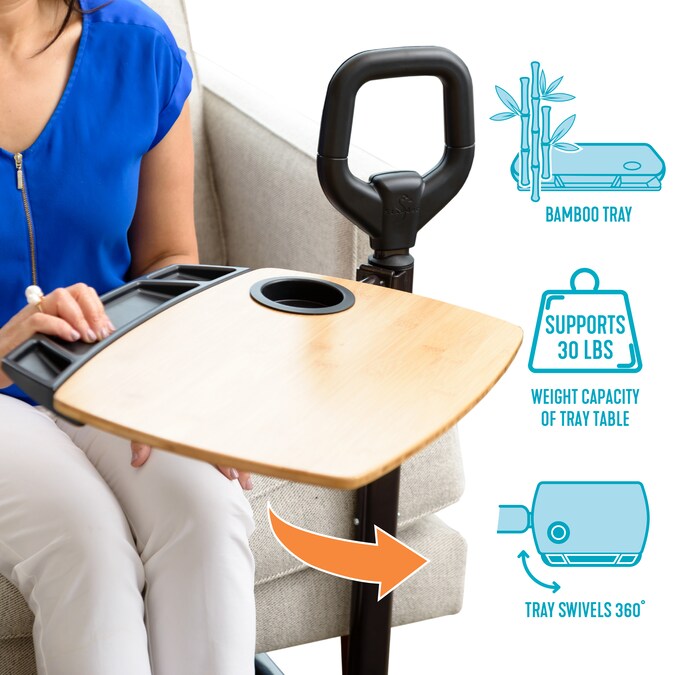 The Able Tray by Able Life is a couch-side handle that makes it easy to stand from your favorite couch or chair. It comes with a convenient multi-use swivel tray so you can eat, surf the web, or simply keep handy items close by. And like all of our products, it blends in with your living-room like another piece of furniture so you can maintain the comforting feeling of your home.