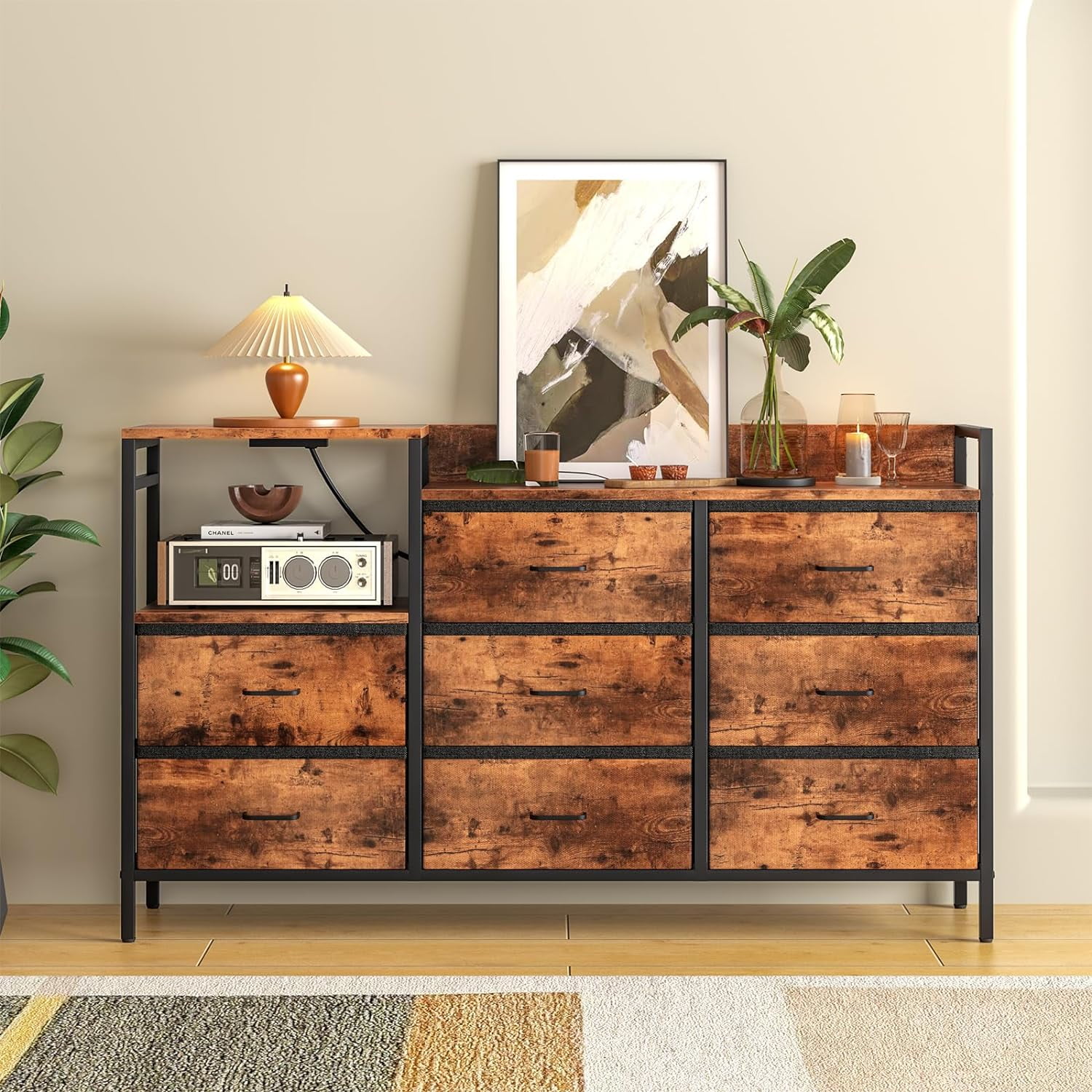 Aboxoo 8 Drawer Dresser for Bedroom with Charging Station, Rustic Brown