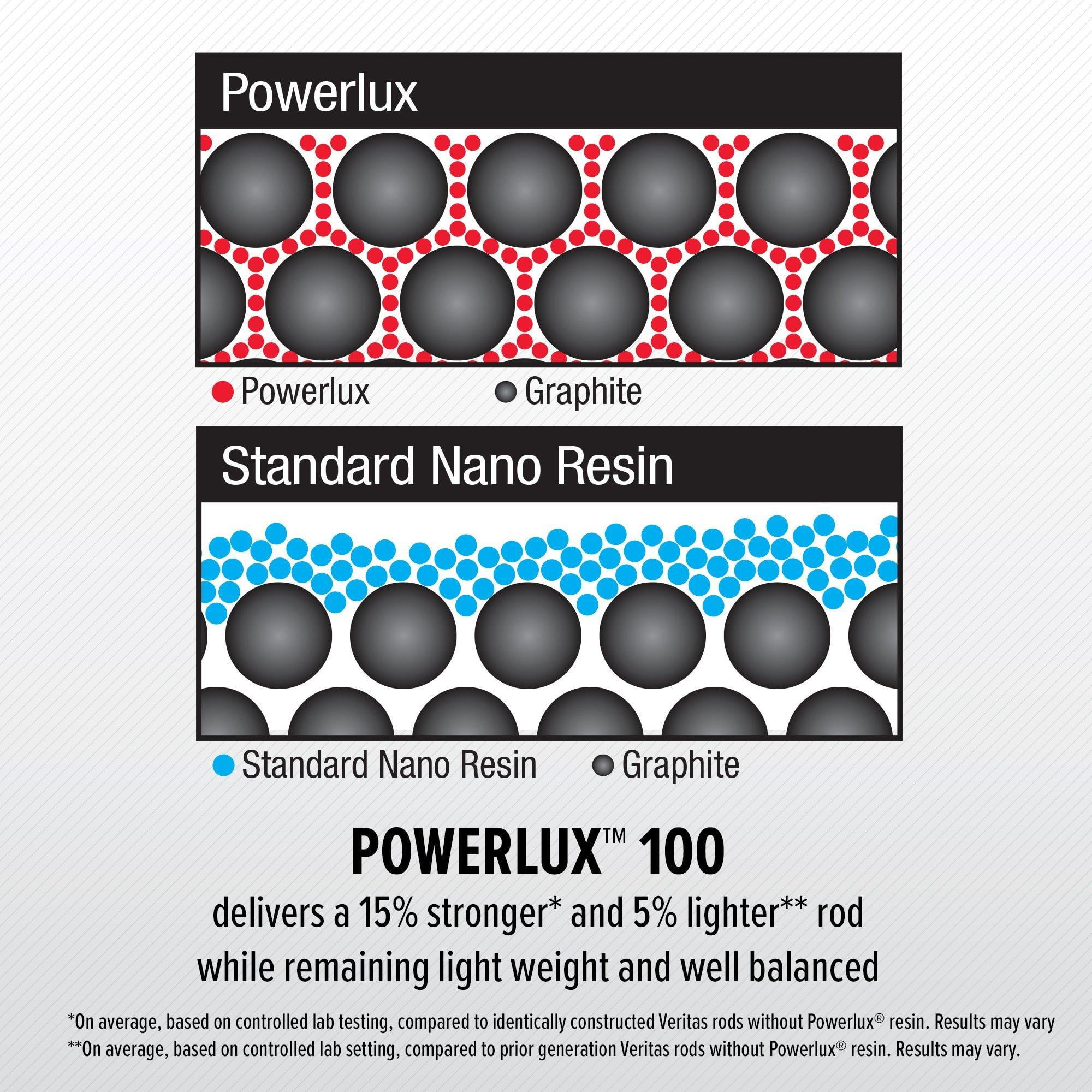 Powerlux 100 delivers a 15% stronger* and 5% lighter** rod while remaining light weight and well balanced Ergonomic Abu designed reel seat ROCS (Robotically Optimized Casting System) Guide train for maximized casting distance with lighter lures Titanium alloy guides with ultra-light zirconium inserts allow for a lightweight balanced rod Closed Cell EVA grips give greater weather and wear resistance 10 stainless steel ball bearings + 1 roller bearing provides smooth operation Lightweight aluminum frame Rocket line management system provides better control of all types of fishing lines