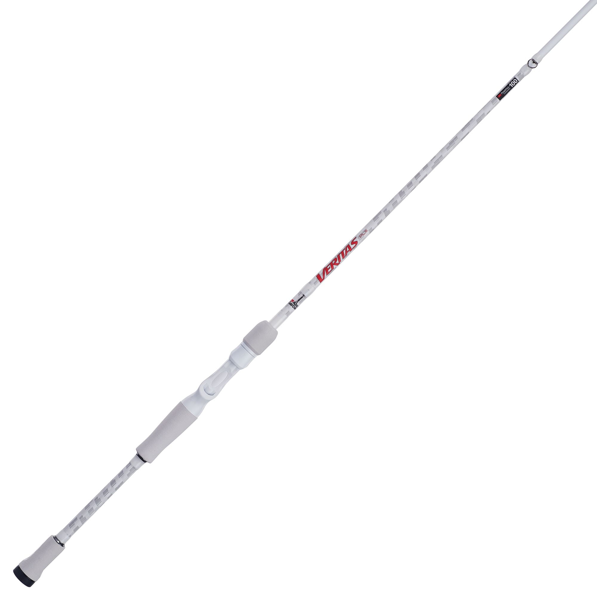 ABU GARCIA VERITAS 7’ CASTING ROD: A balanced and lightweight rod designed for on-the-water technique and style. 12-20LB LINE RATING, MEDIUM HEAVY POWER, FAST ACTION: The Veritas Casting Fishing Rod is up for the next challenge. Lure rating of 1/4-1 oz. GRAPHITE CONSTRUCTION featuring exclusive Powerlux 100 to deliver a 15% stronger* and 5% lighter** rod. Total weight is just 5.1 oz. *On average, based on controlled lab testing, compared to identically constructed Veritas rods without Powerlux resin. Results may vary. **On average, based on controlled lab setting, compared to prior generation Veritas rods without Powerlux resin. Results may vary. 10 TITANIUM ALLOY GUIDES: built with zirconium inserts to allow for a lightweight balanced rod. Also features ROCS (Robotically Optimized Casting System) guide train for maximized casting distance with lighter lures. ERGONOMIC CUSTOM REEL SEAT provides a dependable anchor point for the reel. CLOSED CELL EVA SPLIT GRIP HANDLE (type C) with a rubber rod butt delivers greater weather and wear resistance. 1 PIECE FISHING ROD: Designed for increased sensitivity. HOOK KEEPER: The Texas-rigged hook keeper will work with all bait applications. Rod comes with a 3-year limited warranty.
