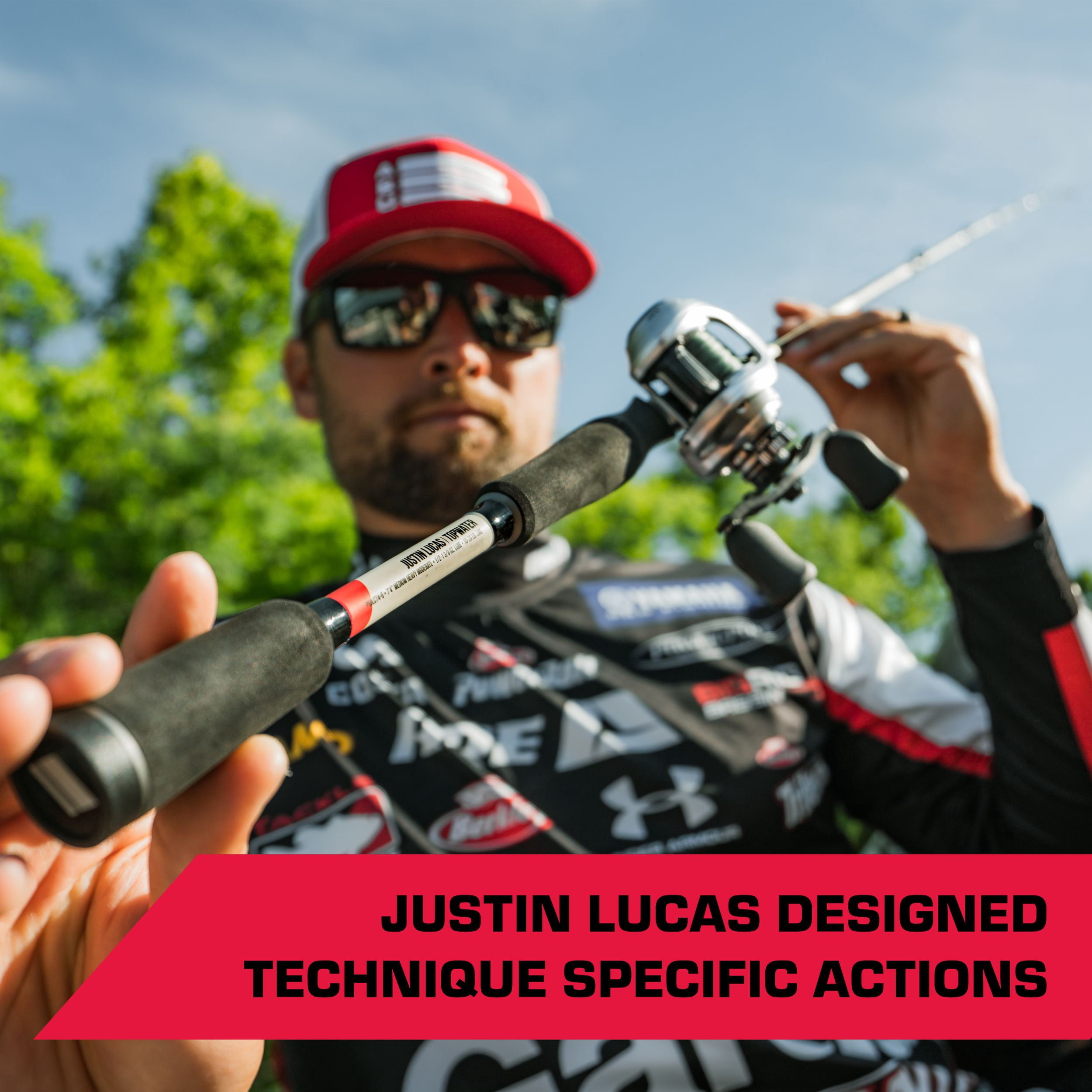 The perfect topwater rod designed for getting maximum casting distance while allowing for a great hook up and landing ratio. It also serves well as a good crankbait rod and lipless crankbait rod.” – Justin Lucas