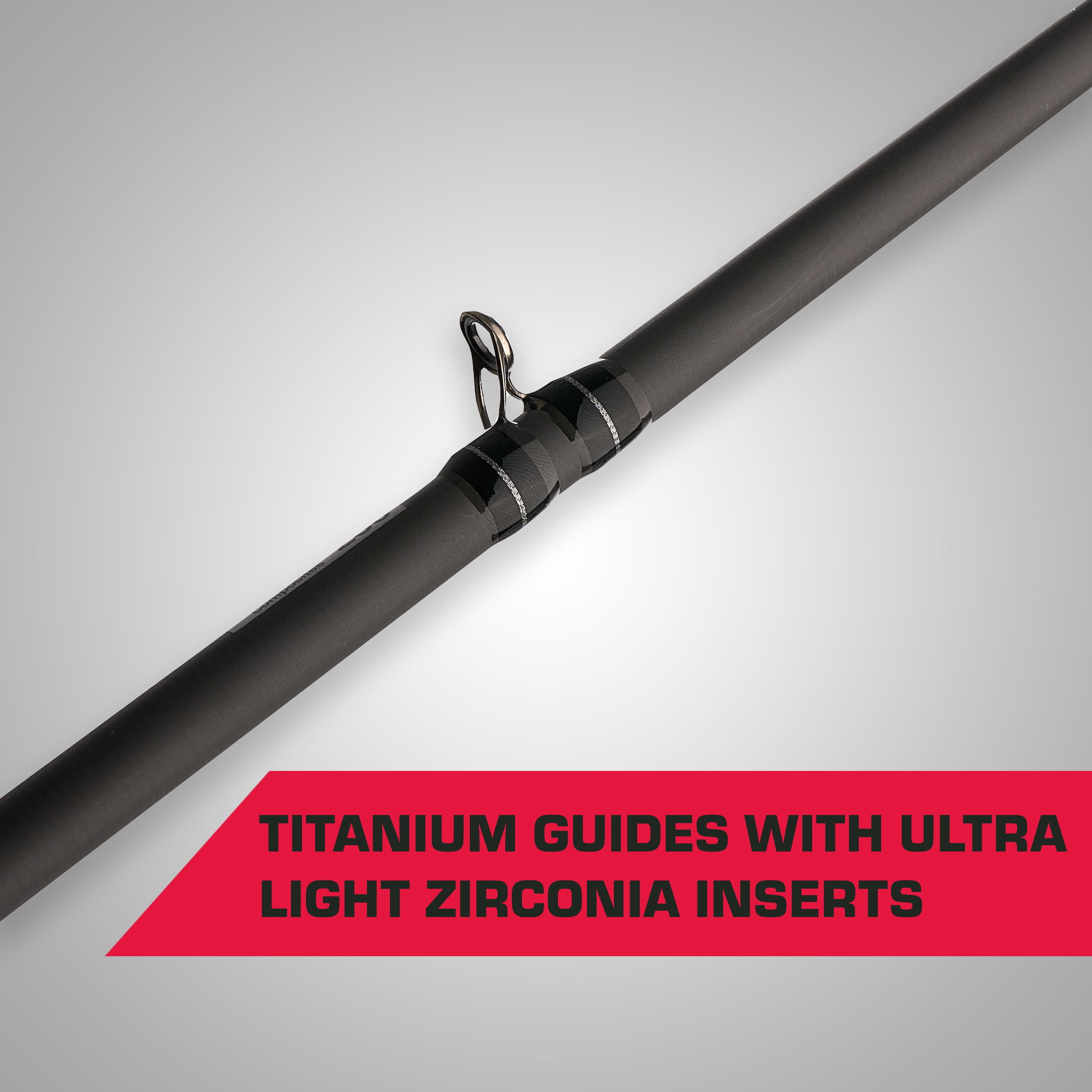 36-Ton graphite with Powerlux™ 200 resin ROCS™ (Robotically Optimized Casting System) Guide train for maximized casting distance with lighter lures Custom Abu designed reel seat for greater comfort Titanium guides with ultra light zirconia inserts Split grip handles Pro-designed technique specific actions Limited 3-year warranty