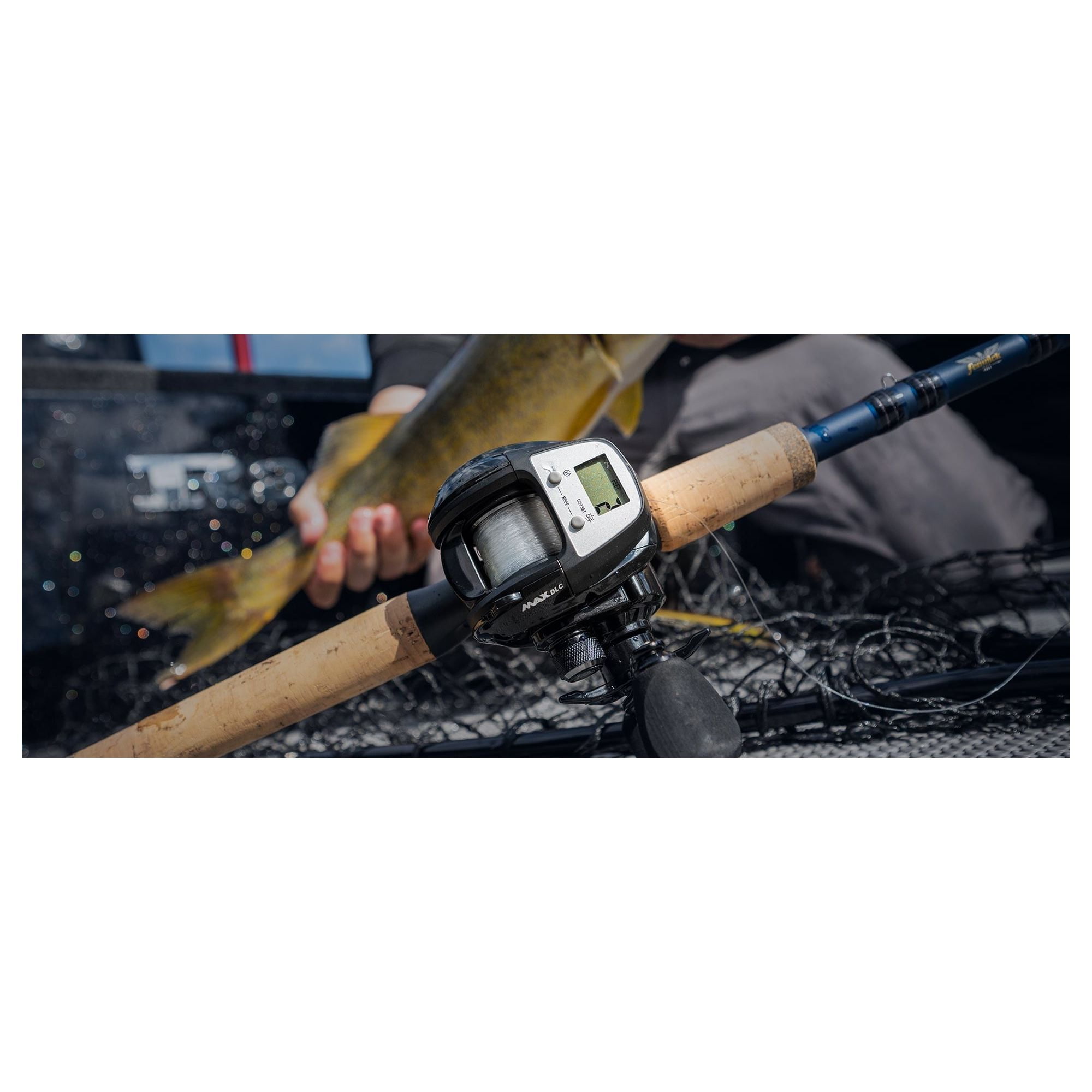 LIGHTWEIGHT CONSTRUCTION: The spool of the Max Digital Line Counter Baitcast Reel is made from machined aluminum, which provides strength without adding excess weight. This Baitcast reel is both durable and lightweight at 8.6 oz. The digital counter measures your line for trolling and downrigging accuracy. RECOVERY RATE: Recover 26” | 66cm of line for every turn of the crank. Gear ratio of 6.4:1. Made with the Dura brass gears to extend your reel’s life. DRAG SPECS: Carbon Fiber Star Drag, Max: 20lb | 9.0kg. The Multi Disc Drag System makes it easier for you to adjust during a fight. LINE CAPACITY: Mono Capacity yd/lb: 135/10 110/12 80/17. Braid Capacity 135/20 105/30 75/50. RIGHT HANDLE POSITION: The ergonomically designed compact bent handle and star give you all-day comfort. EVERLAST BAIL SYSTEM ensures improved durability with each cast of the line. 5 TOTAL BEARINGS: 4 ball bearings plus 1 instant anti-reverse bearing provides smooth operation for any fishing experience. LIGHTED DIGITAL LINE-COUNTER: Accurately measures line for extreme trolling and/or downrigging accuracy.