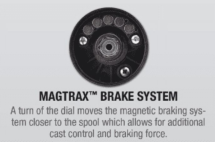 Abu Garcia Pro Max Baitcast Low Profile Fishing Reel: 7 stainless steel ball bearings + 1 roller bearing provides smooth operation. Machined double anodized aluminum spool provides strength without adding excess weight. Power Disk drag system gives smooth drag performance. Duragear brass gear for extended gear life. MagTrax brake system gives consistent brake pressure throughout the cast. Compact bent handle and star provide a more ergonomic design.