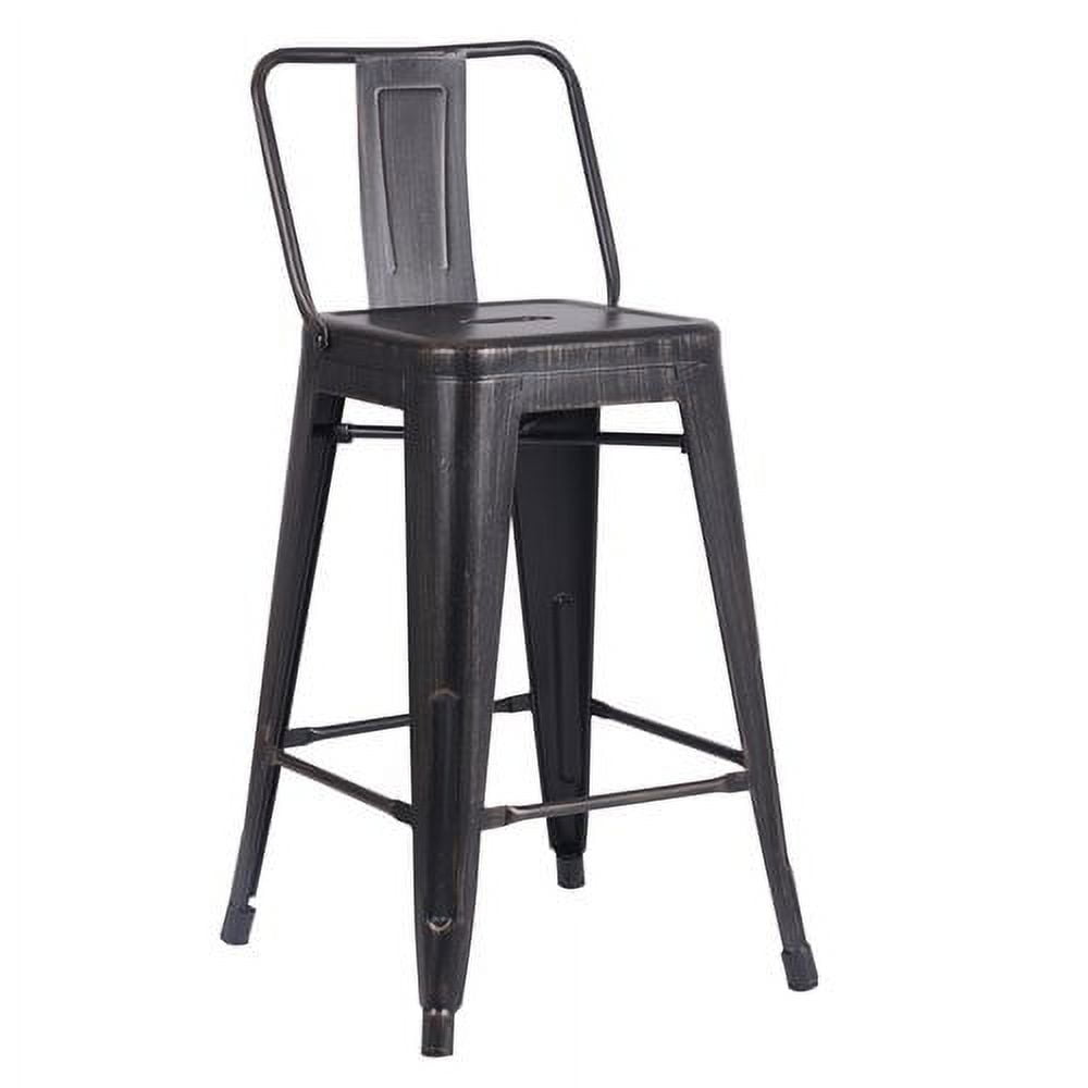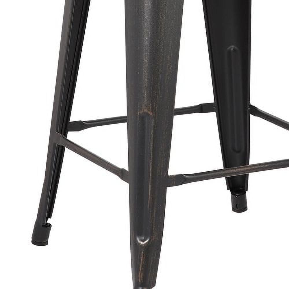 AC Pacific Distressed Metal 24″ Barstool with Back, Set of 2, Black