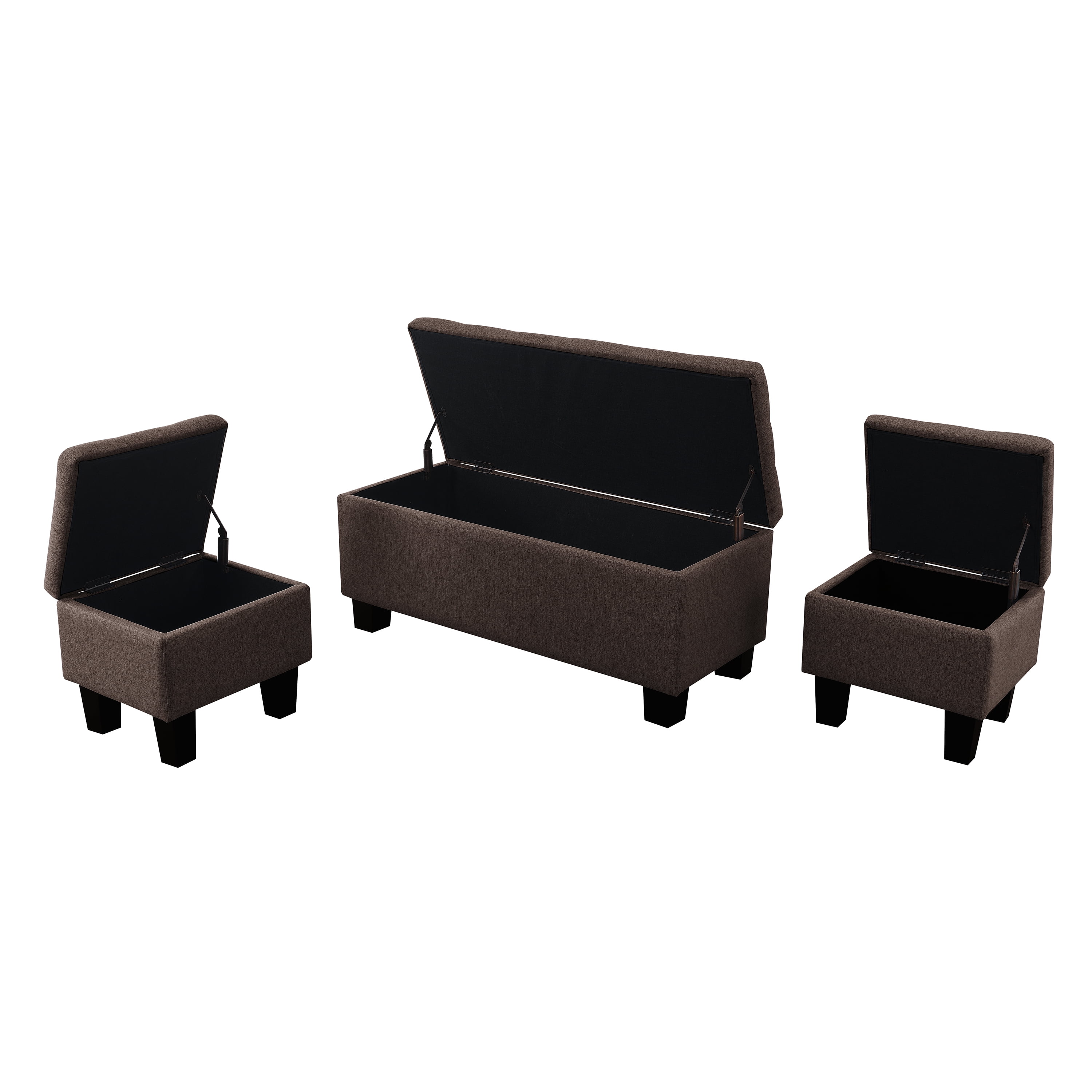 AC Pacific Tufted Upholstery Storage Bench with Matching Ottomans, Brown, 3pcs
