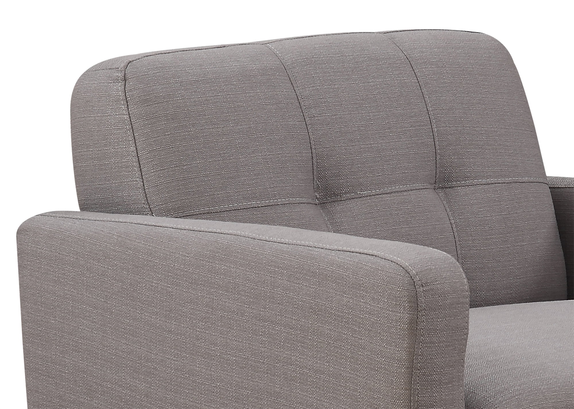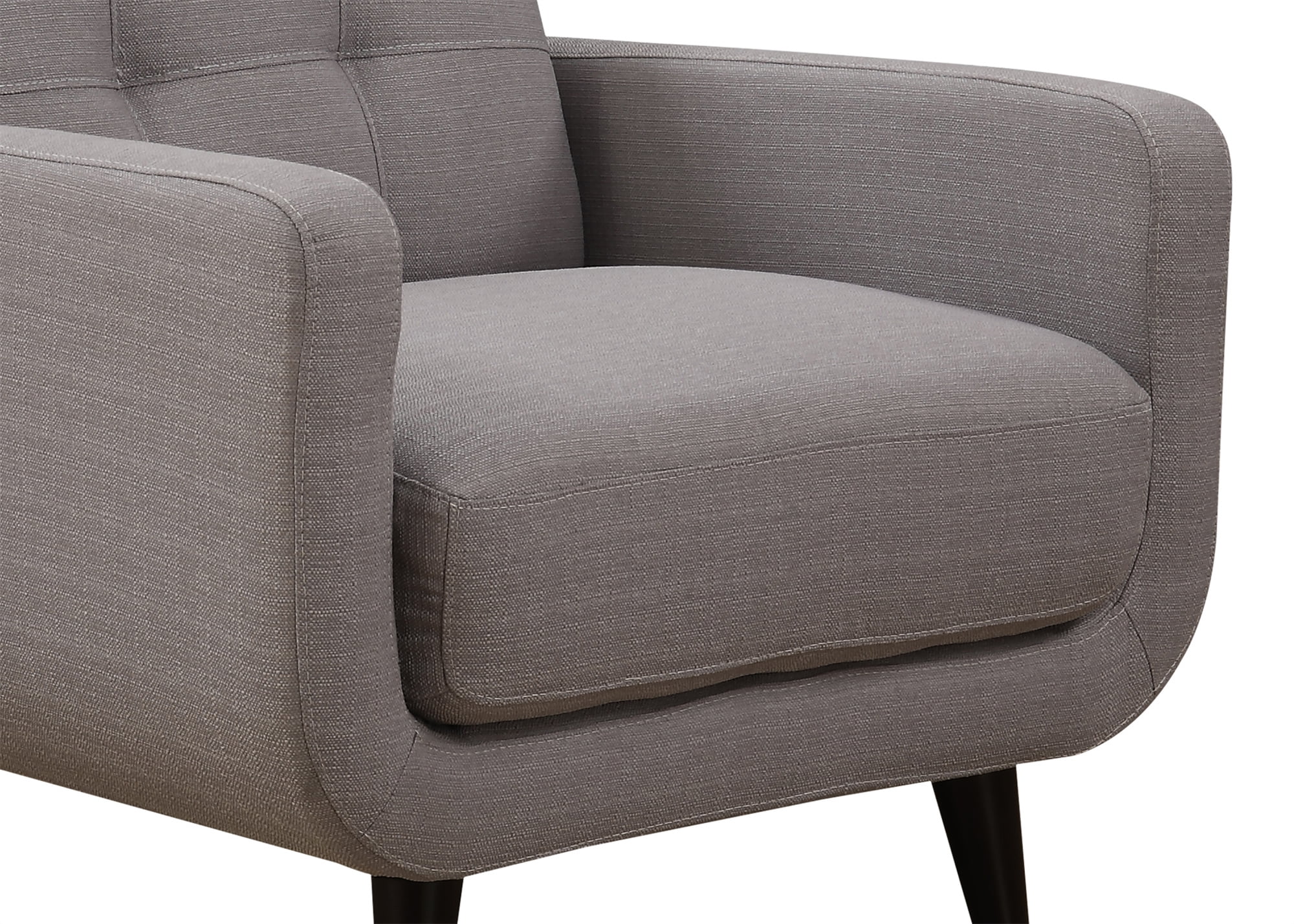 The Arm Chair Measures 35″ X 35″ X 34″ and Weighs 51 Lbs. Arrives with Only Minimal Assembly Required. With a Beautiful Mid-Century Modern Design, the Gray Arm Chair will be the Focal Point of your Living Room, Media Room, Office, or Any Room You Place it in. Everyone will be asking Where You got this Piece, that Comfortably Seats 2. Clean Lines, Beautiful Curves, and a Carefully Tufted Back Cushion make the Mid Century Arm Chair the Perfect Fusion between Modern and Classic Style. Rich Espresso Legs are an Immaculate Finishing Touch. Expertly Crafted from Select Hardwoods and Upholstered in a High Quality Polyester Blend, the Modern Arm Chair is an Exceptionally Durable Piece. Easy to Maintain, the Chair can be Spot Cleaned. Chair: 34″ H x 35″ W x 35″ D