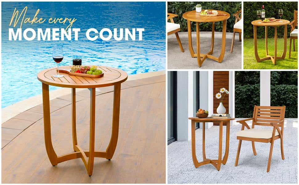 Acacia Wood Bistro Patio Dining Table – Modern Design, 270lbs Heavy Duty