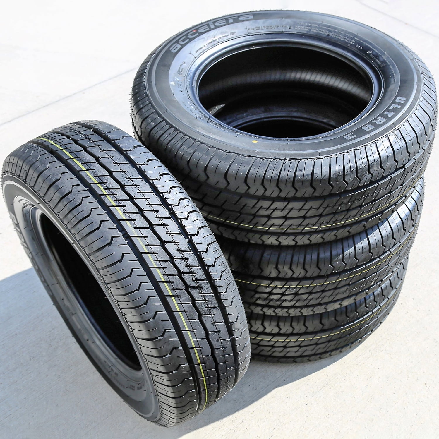 Accelera Ultra 3 FEATURES AND BENEFITS All weather traction Enhanced driving stability Boosted cornering ability Comfortable driving experience OVERVIEW The Accelera Ultra 3 is a highway terrain, all season tire with off-road capabilities manufactured for commercial vehicles. The tire is made to perform well in dry, wet and winter conditions. The specially designed tread pattern and tire compound ensure great all weather traction. The special tire compound keeps its flexible traction throughout the year, including in winter weather temperatures. The two main circumferential grooves and numerous lateral ones enhance the water and slush dispersing ability and ensure a safer, hydroplaning-free drive in all weather. The model is capable of performing well on slight off-road terrains. It conquers gravel roads with ease and promotes traction in such conditions. The tread design offers great traction. As the tire is capable of light off-road performance, it offers better versatility, which makes it perfect for drivers looking for tires that can handle both on and off-road performance. Superb stability and cornering ability are provided with this model by the notched shoulder tread block design. It grips the road excellently in all dry and wet weather. By doing so it stabilizes the tire against the driving pressure affecting it and enhances the tire’s controllability. The tire maintains its stability and optimal shape during the drive, which boosts its performing ability. The cornering ability and power are also upgraded as the shoulder design provides additional biting edges during such situations. They have a firm grip on the road and ensure a safer all weather drive. The Ultra 3 maintains road contact at all times. As it closely follows the road surface, the tire lowers the road vibrations felt in the vehicle’s cabin. This ensures a more comfortable driving experience in all weather conditions. Manufacturers only provide the width and rim diameter with these tires. Various brands and models will have discrepancies. To ensure the correct size is purchased, the overall tire diameter should be checked. The Overall Diameter advertised represents the overall diameter in inches, once it has been inflated and mounted. Manufacturers recommend changing tires every 10 years. As long as tires are properly stored before they are sold, the year of their manufacture will not shorten their service life.
