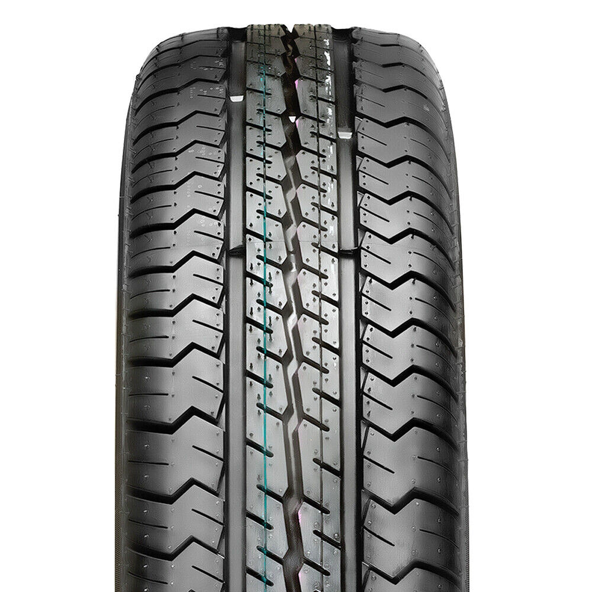 Designed for use on light commercial vehicles Two wide grooves combined with a smaller center groove rapidly clear water to prevent hydroplaning Notched shoulder blocks offer strong cornering stability Twin ribs and circumferential sipes provide on and off road traction in dry and wet conditions Optimized design improves ride comfort Size: 195/75R16C Load Range: D Product May Vary From Picture Wheel/Rim Not Included