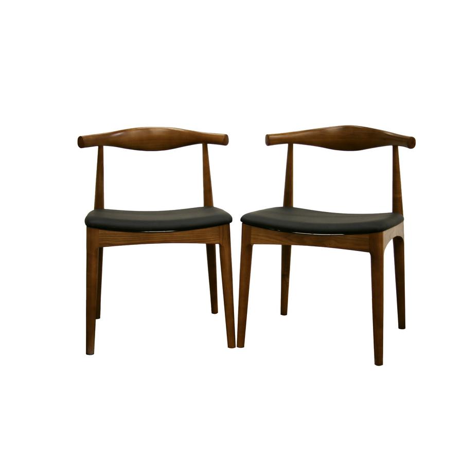 With a retro-inspired design and tastefully rounded lines, the Sonore Chair is a great way to beautify your dining room. Each chair has a solid wood frame including a gently curved back with medium wood stain resembling walnut. The seat is padded with dense foam and finished off with soft faux leather in black. Also included are opaque plastic non-marking feet for additional stability and for added protection of sensitive flooring. Assembly is required. Features: Finish: walnut Made of solid wood Padded seat with dense foam and finished off with soft faux leather in black Curved back Opaque plastic non-marking feet Product Weight: 20 lbs Specifications: Product Dimensions: 31″ H x 21″ W x 21″ D