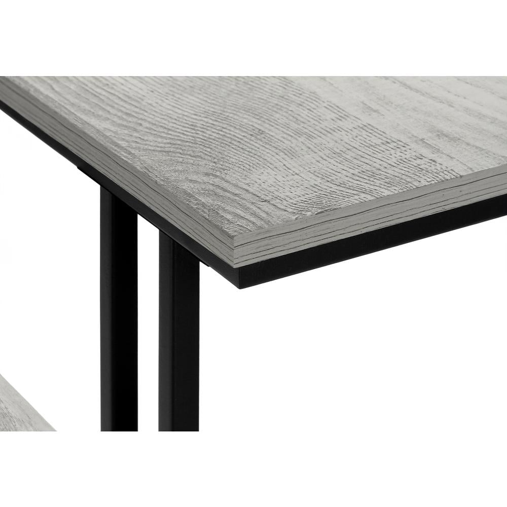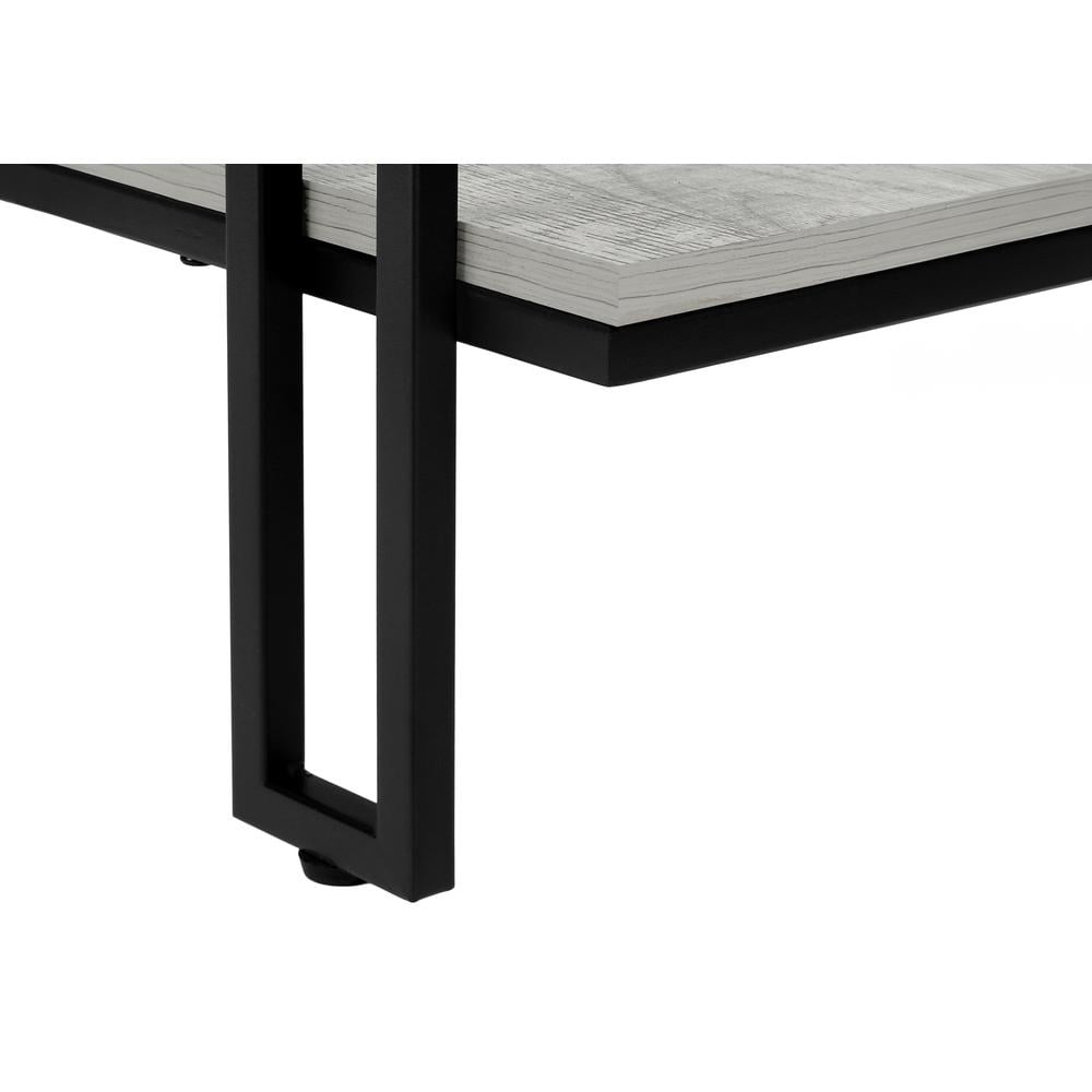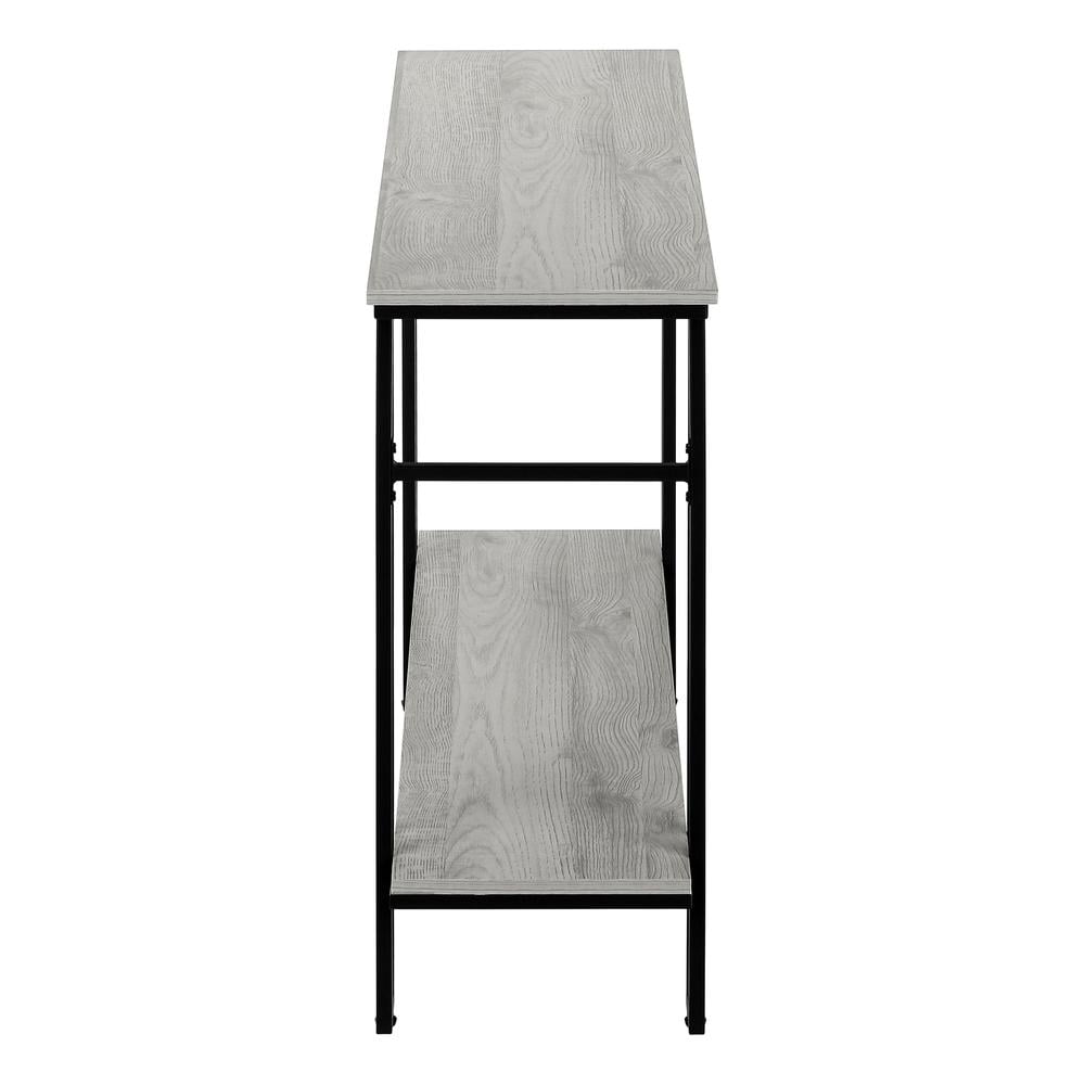 Finish: Gray and Black Materials: Metal and Particle Board Contemporary reclaimed wood look surfaces in a gray wash color Modern H-frame metal legs in black provide the stability you need Perfect entryway table or accent table for the hallway, living room, bedroom or office This console table features a bottom panel for extra storage space