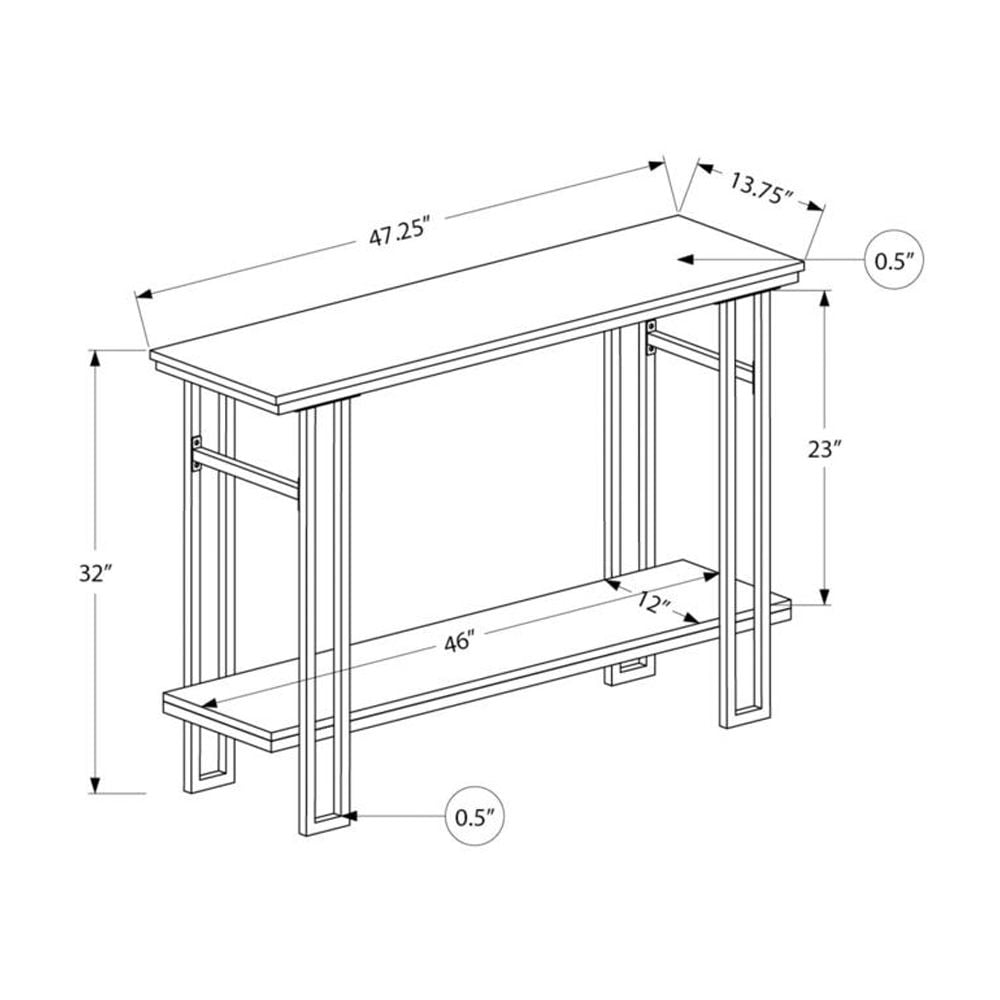 Enjoy this highly-functional console table that will be a smart addition to your home. A perfect fit for your favorite decorative items such as your photos, collectibles and even your keys after a long day of work, this accent table can be placed in the entryway or even behind the sofa. Featuring a sleek reclaimed finish in a gray wash color, the solid black metal H-frame provides stability. This console is sure to bring a fashionable touch to your home, apartment or condo. Features: Finish: Gray and Black Materials: Metal and Particle Board Contemporary reclaimed wood look surfaces in a gray wash color Modern H-frame metal legs in black provide the stability you need Perfect entryway table or accent table for the hallway, living room, bedroom or office This console table features a bottom panel for extra storage space Specifications: Product Dimensions: 32″ H x 47.25″ W x 13.75″ D Product Weight: 29 lbs Shelf Dimensions: 23″ H x 46″ W x 12″ D Top Dimensions: 0.5″ Thick Shelf Weight Capacity: 10 lbs Weight Capacity: 50 lbs Number of Shelves: 1