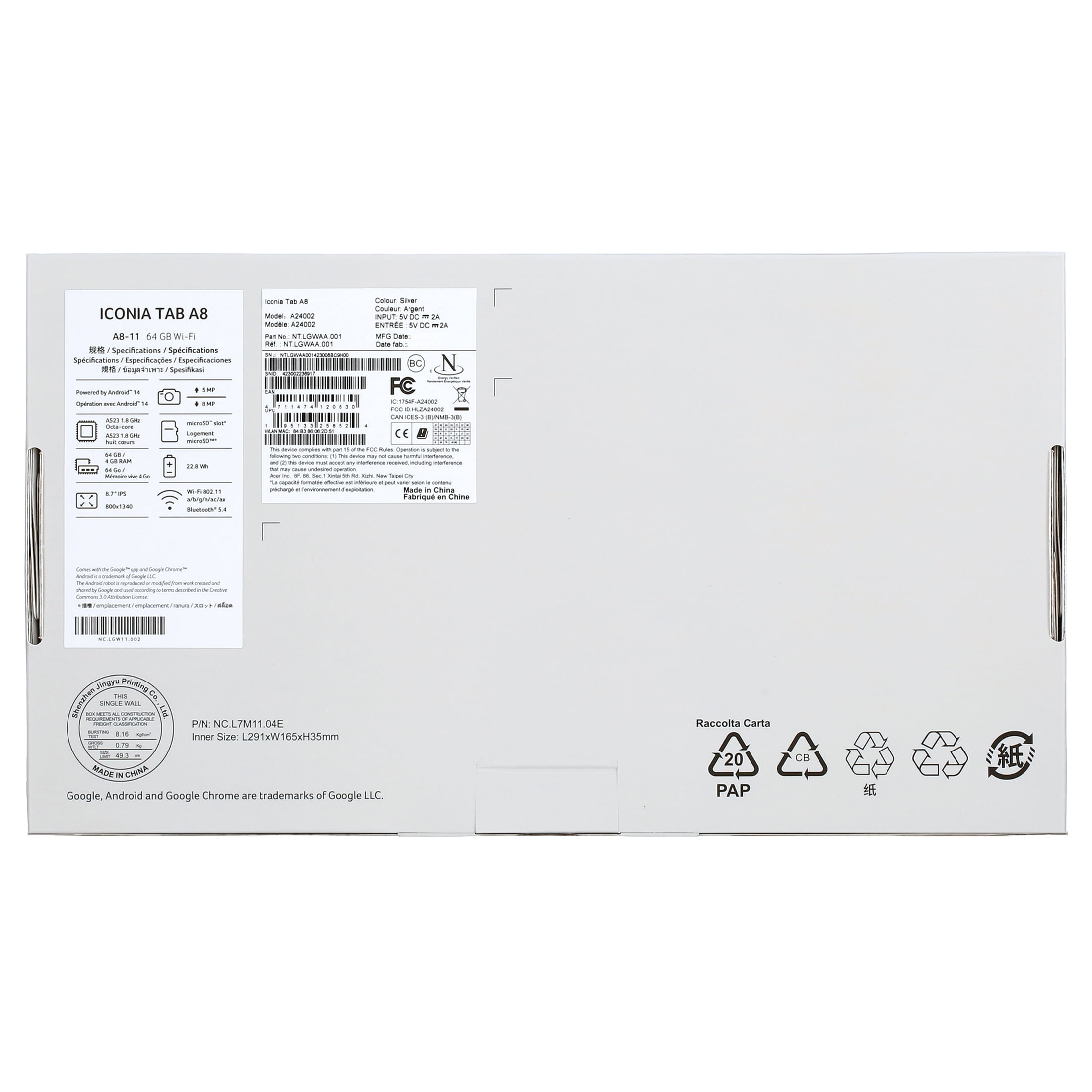 Acer Iconia Tab A8 Tablet, Allwinner A523 Octa-Core CPU, 4GB LPDDR4, 64GB eMMC, Wifi-6, Android 14