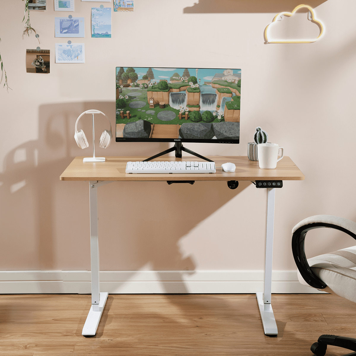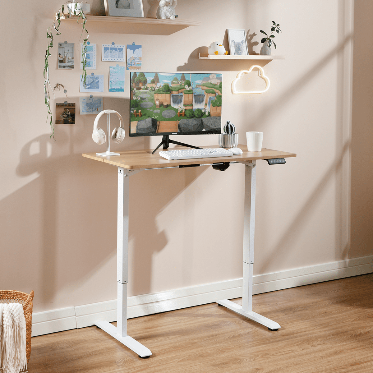 ACEssentials Electric Height Adjustable Sit/Stand Desk, Natural Wood/White, Teen/Adult 43.3×23.6×40