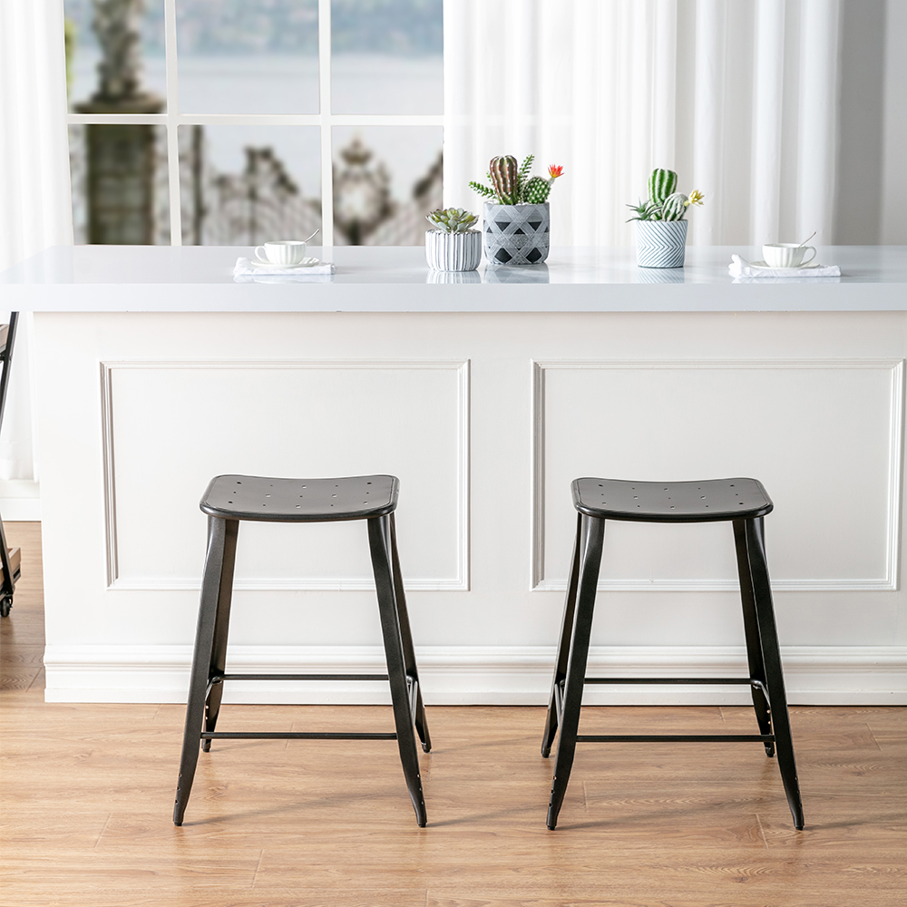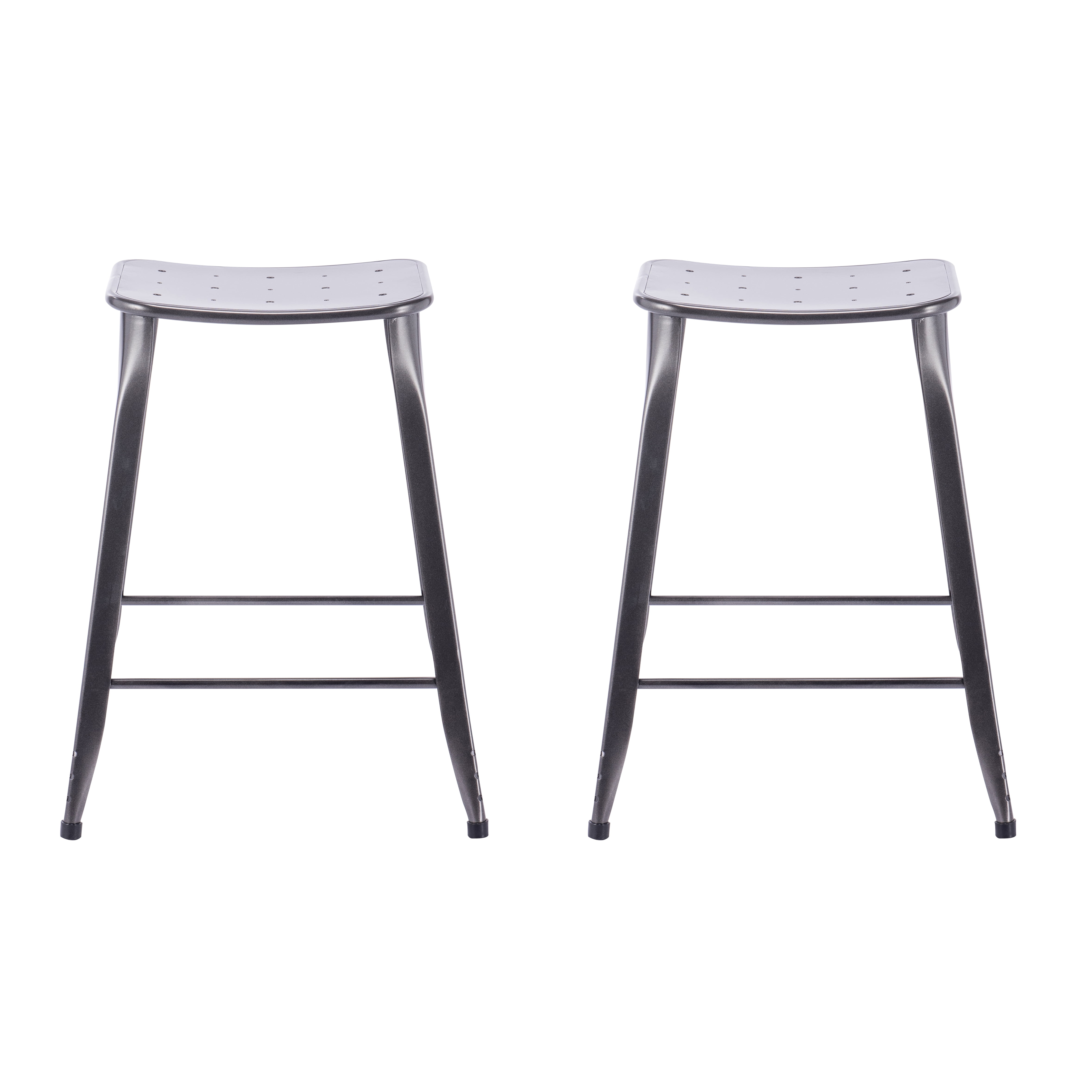 SET OF 2 INDUSTRIAL COUNTER STOOLS: Includes two counter stools with a modern industrial look to provide an instant upgrade to your kitchen seating EASY STORAGE: Backless design makes stools easy to tuck under your counter when not in use for convenient storage DURABLE CONSTRUCTION: Sturdy steel frames with a charcoal powder coated finish provide long-lasting style that is easy to wipe clean FUNCTIONAL COMFORT: Footrest bars make these stools a comfortable spot to sit for hours so you can enjoy time with family and friends COUNTER HEIGHT: Counter height stools measure 16.11″ x 18.86″ x 23.78″ and bring a decorative flair to your dining area that is sure to catch your eye