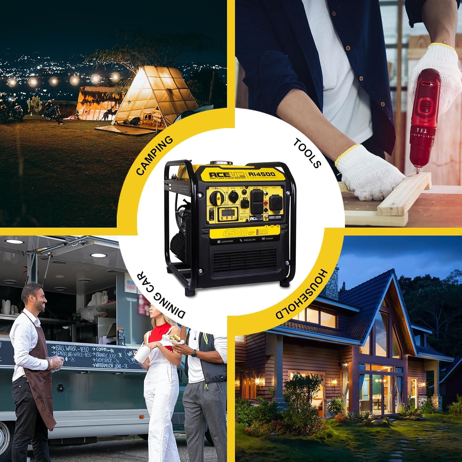 Aceup Energy 4500 Watt Open Frame Inverter Generator, Gas Generator 223CC RV-Ready, 4000W Generator EPA Compliant
