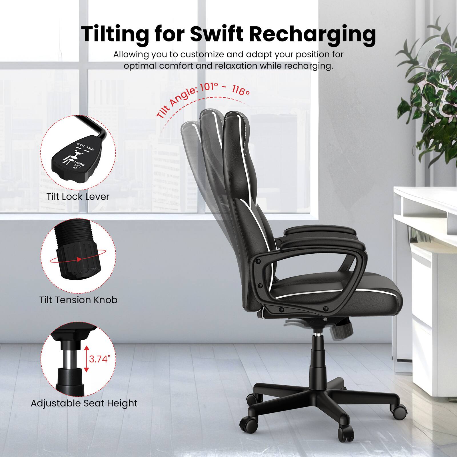 - Chair Tilt: Adjustable with tilt-tension control and tilt lock