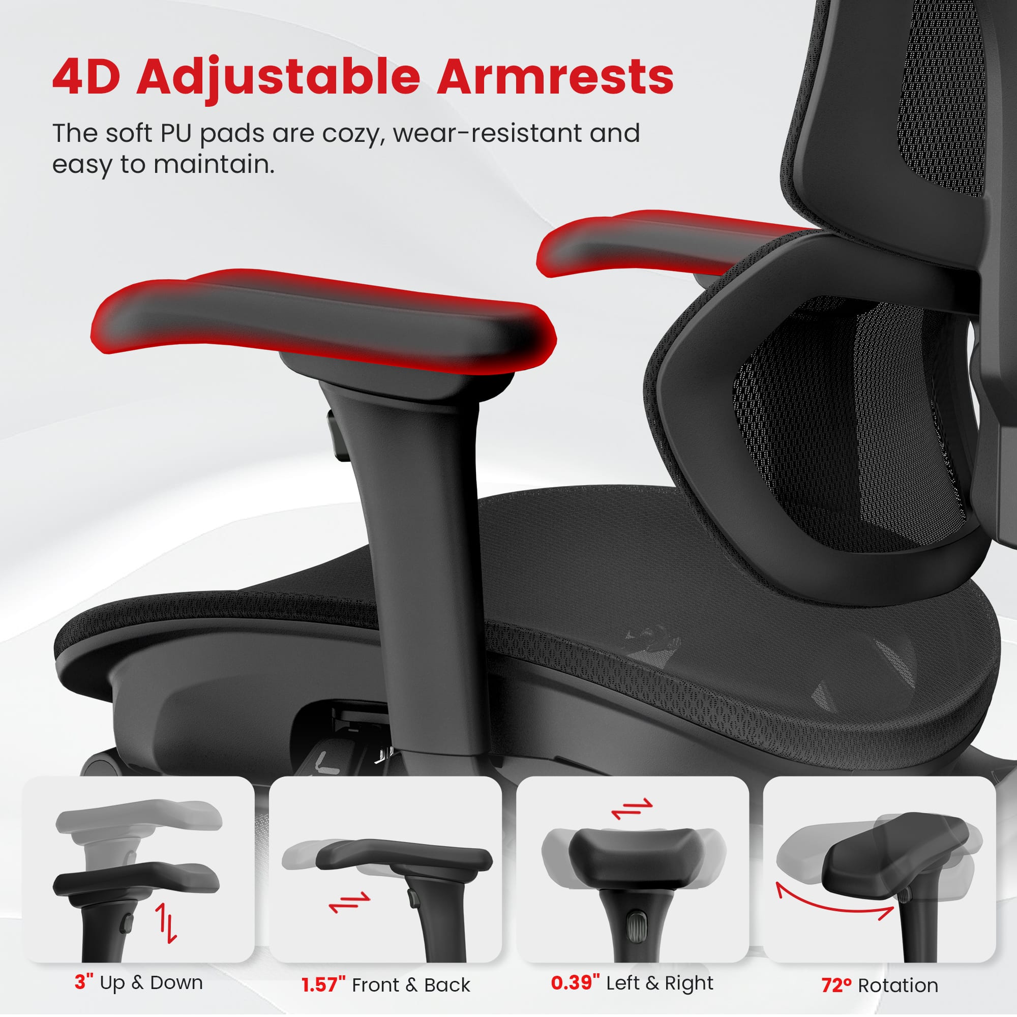- Product Name: Ergonomic Mesh Office Chair, High Back Gaming Chair w/ Footrest, Lumbar Support, 4D Armrest, Headrest, Large Nylon Base