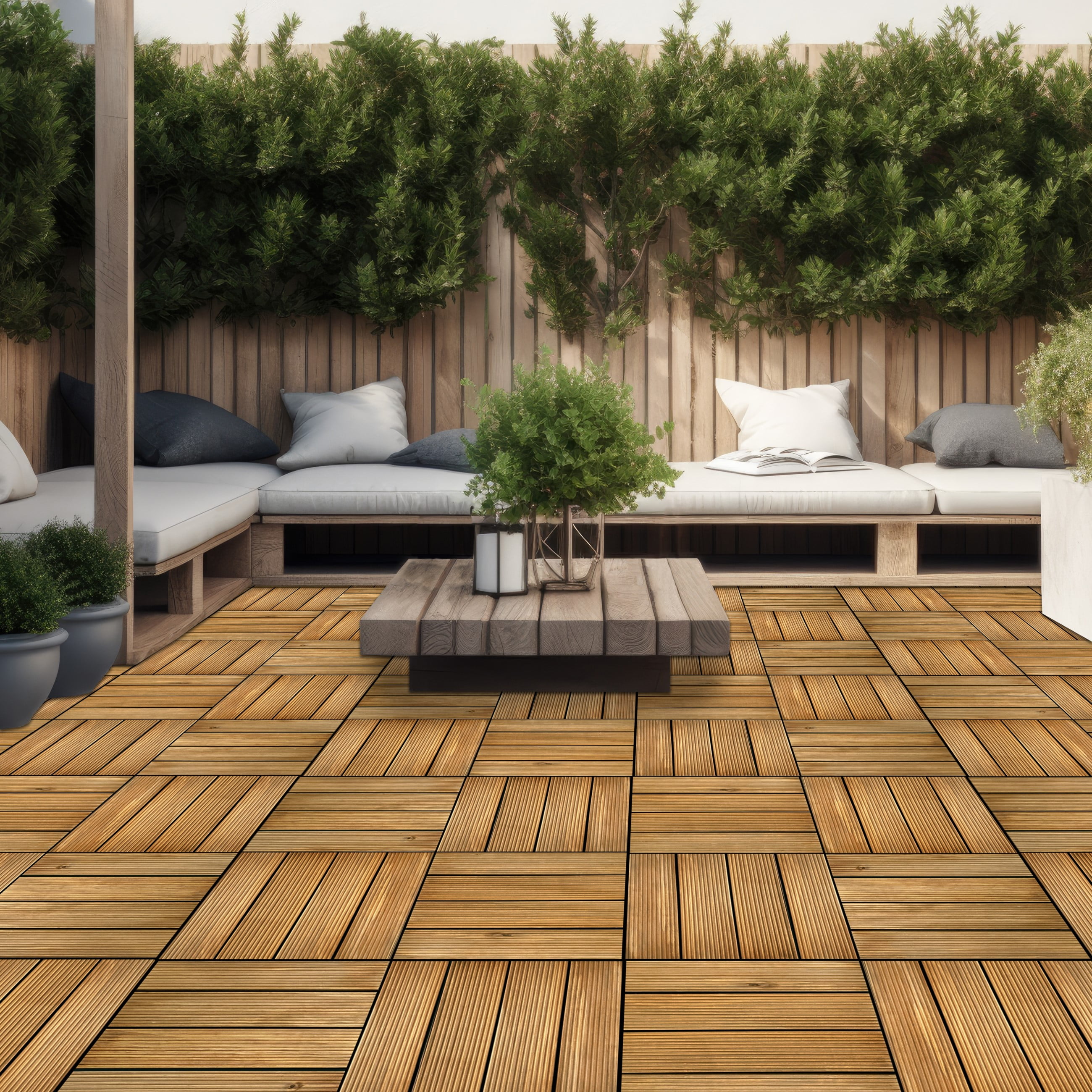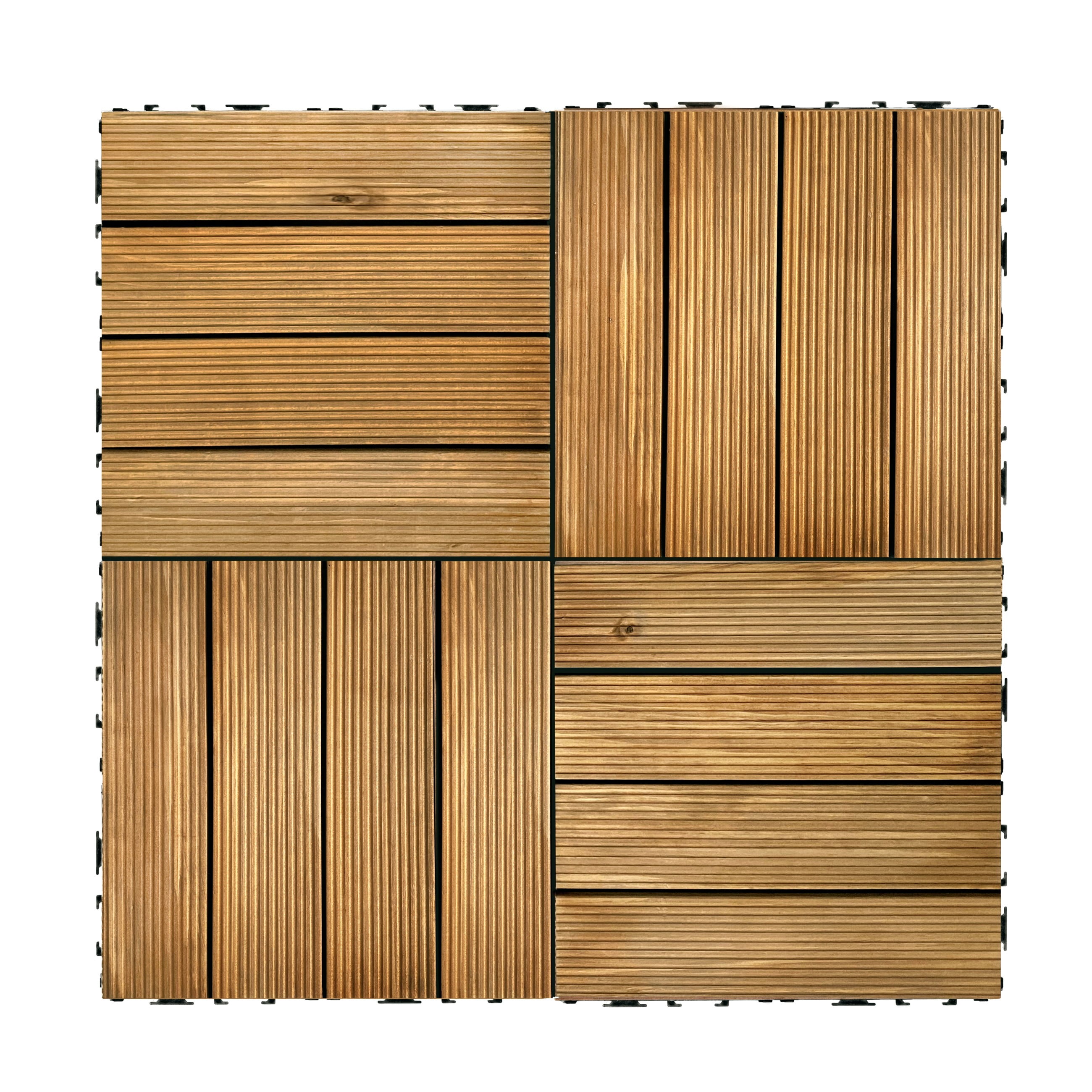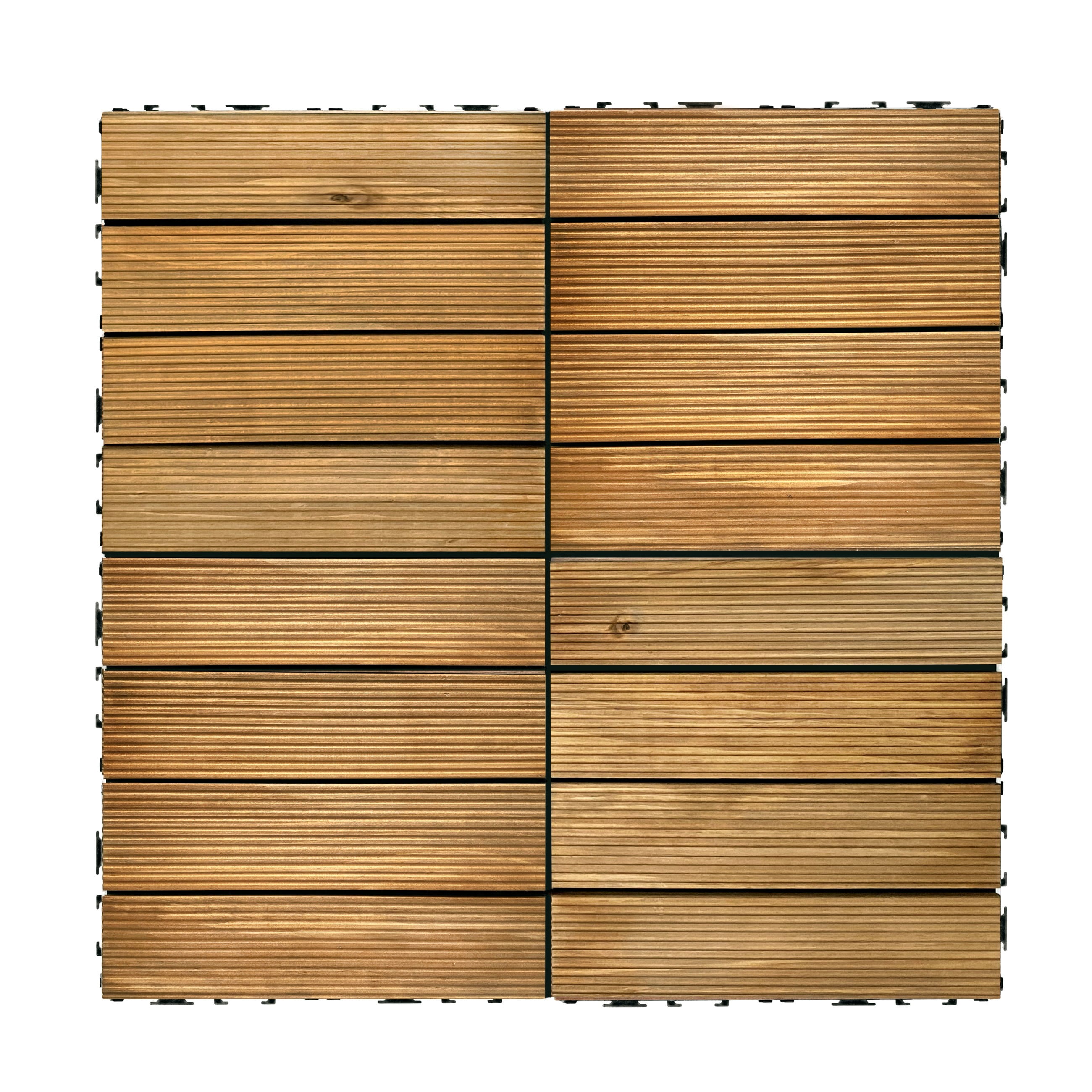 Easy DIY Installation: Transform your outdoor space without the need for tools or professional assistance. Simply lay these interlocking tiles on a flat, solid surface, and connect them effortlessly. Natural Wood Aesthetic: Crafted from 100% pine wood planks, each tile showcases natural imperfections and variations in color, providing a stunning, textured appearance. Customizable Design: The interlocking connectors allow for easy customization and reconfiguration of your outdoor space. Adapt them to fit your balcony, patio, terrace, or porch effortlessly. Durable Build: These deck tiles are built to withstand outdoor conditions, making them ideal for all-weather use. They are .8 inches thick for enhanced durability. Generous Coverage: Each set includes 27 tiles, covering 27 square feet in total. Whether for small or spacious areas, Achim OutdoorZ tiles offer the coverage you need for a stylish outdoor oasis.