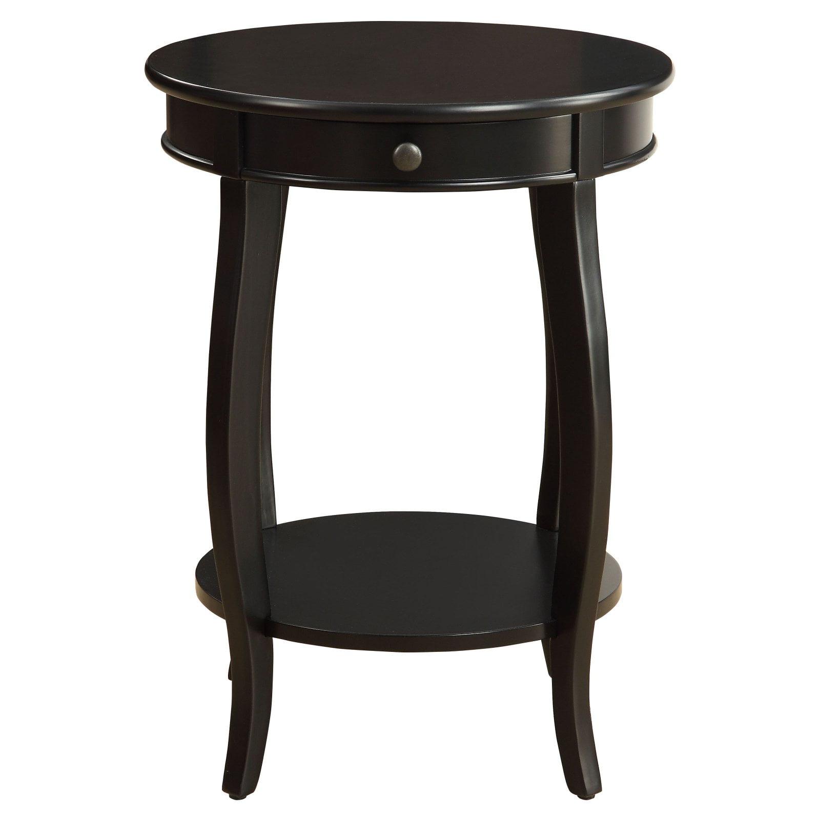 Add a little storage to your living room with this Alysa side table, which is designed to have lower storage and a small drawer for remotes or other items. The transitional silhouette in a black finish brings style and function at arms length. This table will cast an elegant feel and mix with almost any style. Features: Round leg table 1 Drawer Open Storage: Bottom shelf Wooden round top and shelf Wooden cabriole leg Optional colors Specifications: Product Dimensions: 24″ H x 18″ W x 18″ D Product Weight: 12 lbs