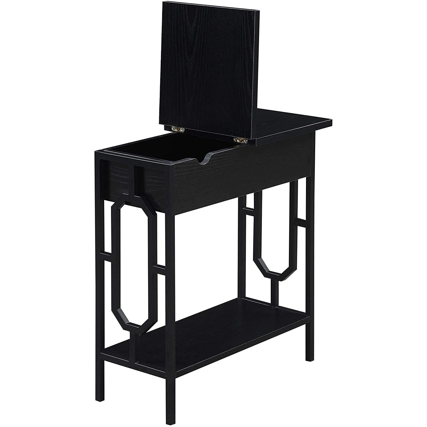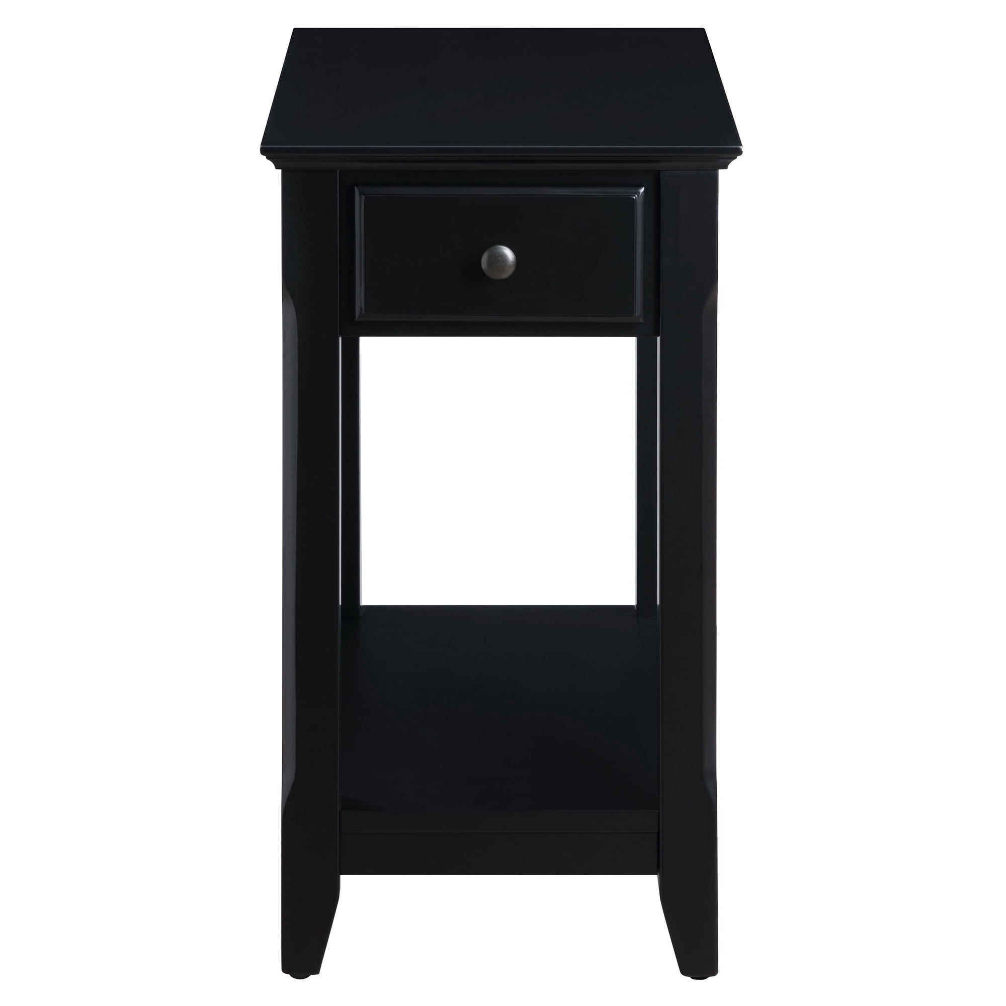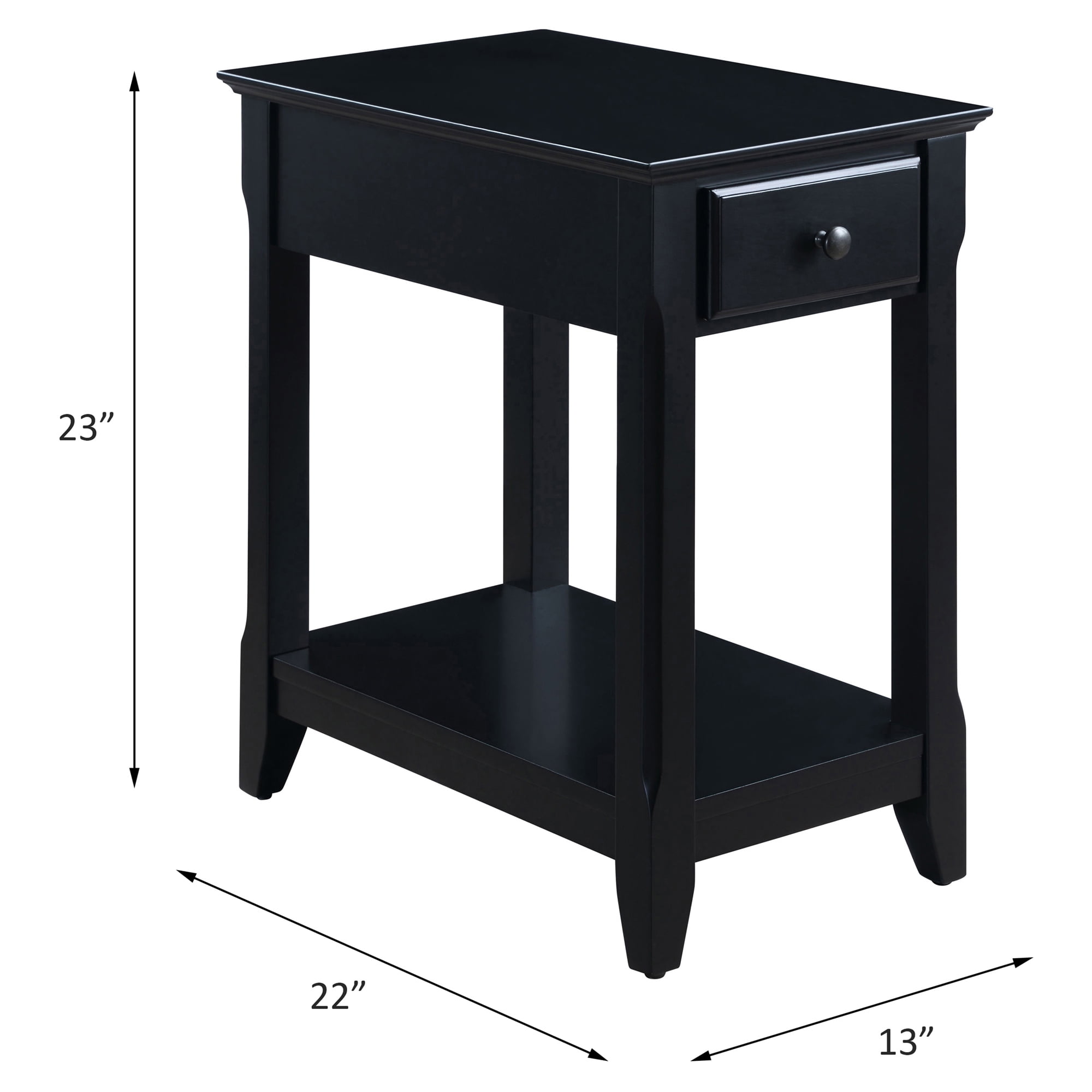 Rectangular table top Wooden top 1 open storage compartment Knobs handle drawer Number of drawer: 1 Number of shelves: 1 Drawer weight capacity: 10 lbs Assembly required