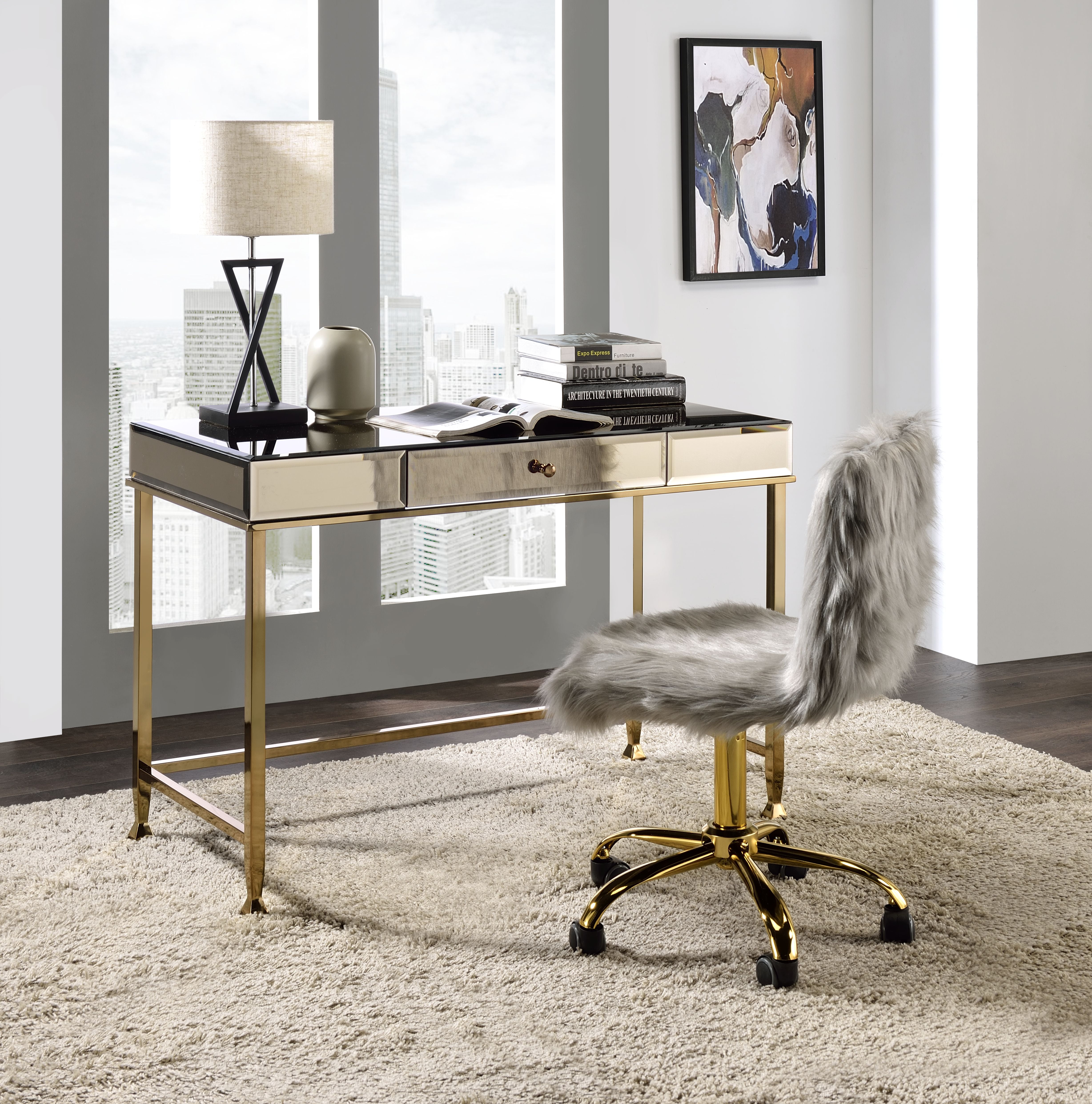 ACME Canine Writing Desk in Smoky Mirrored and Champagne