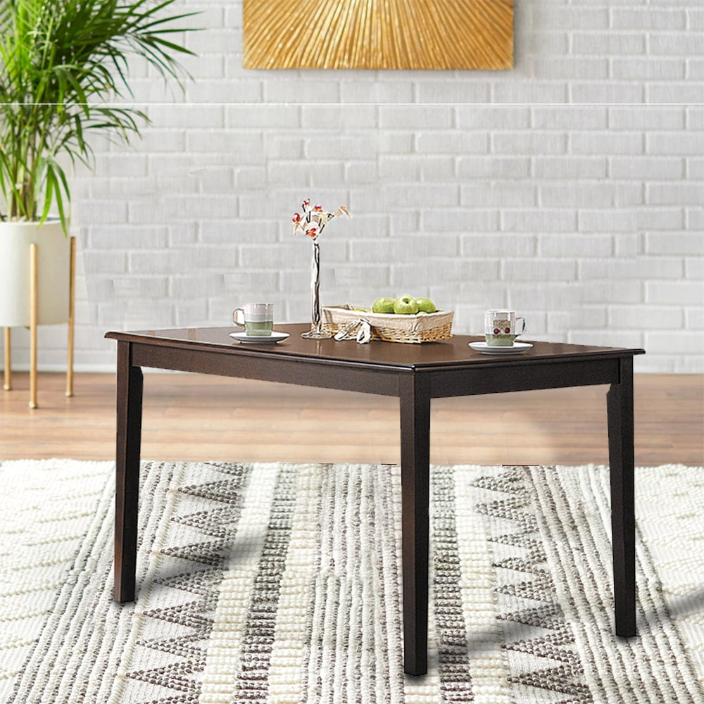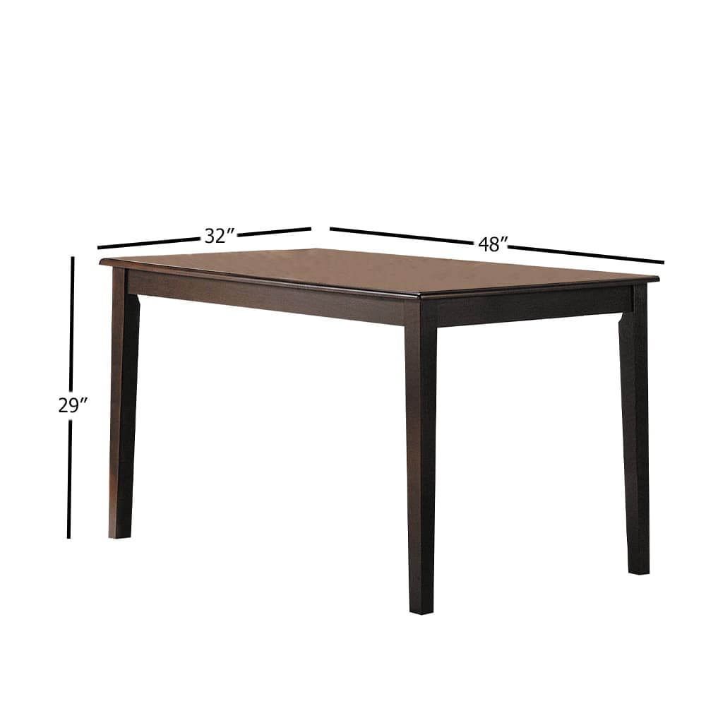 Wooden Dining Table With Tapered Legs Espresso Brown – Saltoro Sherpi Mix and match this Dining Table to custom design your perfect dining room space. This versatile table works well with contemporary classic or even industrial seating options. Its dark espresso finish enhances the versatility by working with any wall color and interior design. This dining table is built of rubber wood solids and veneers to ensure lasting beauty. With 48-inches of length this table can easily seat four people so you can enjoy your next meal with friends and family alike. Dimensions: Width: 32in x Length: 48in