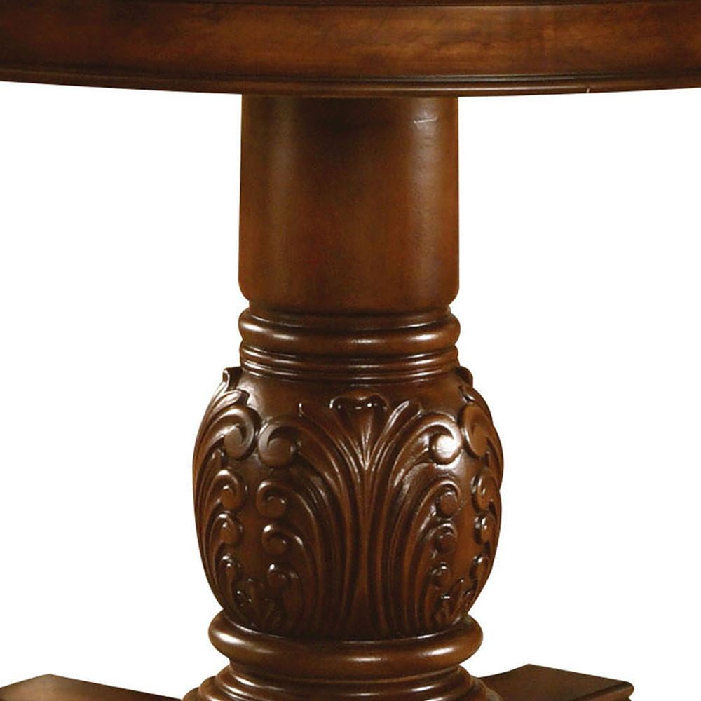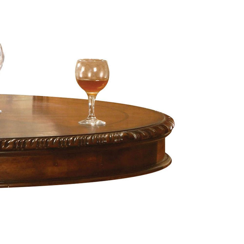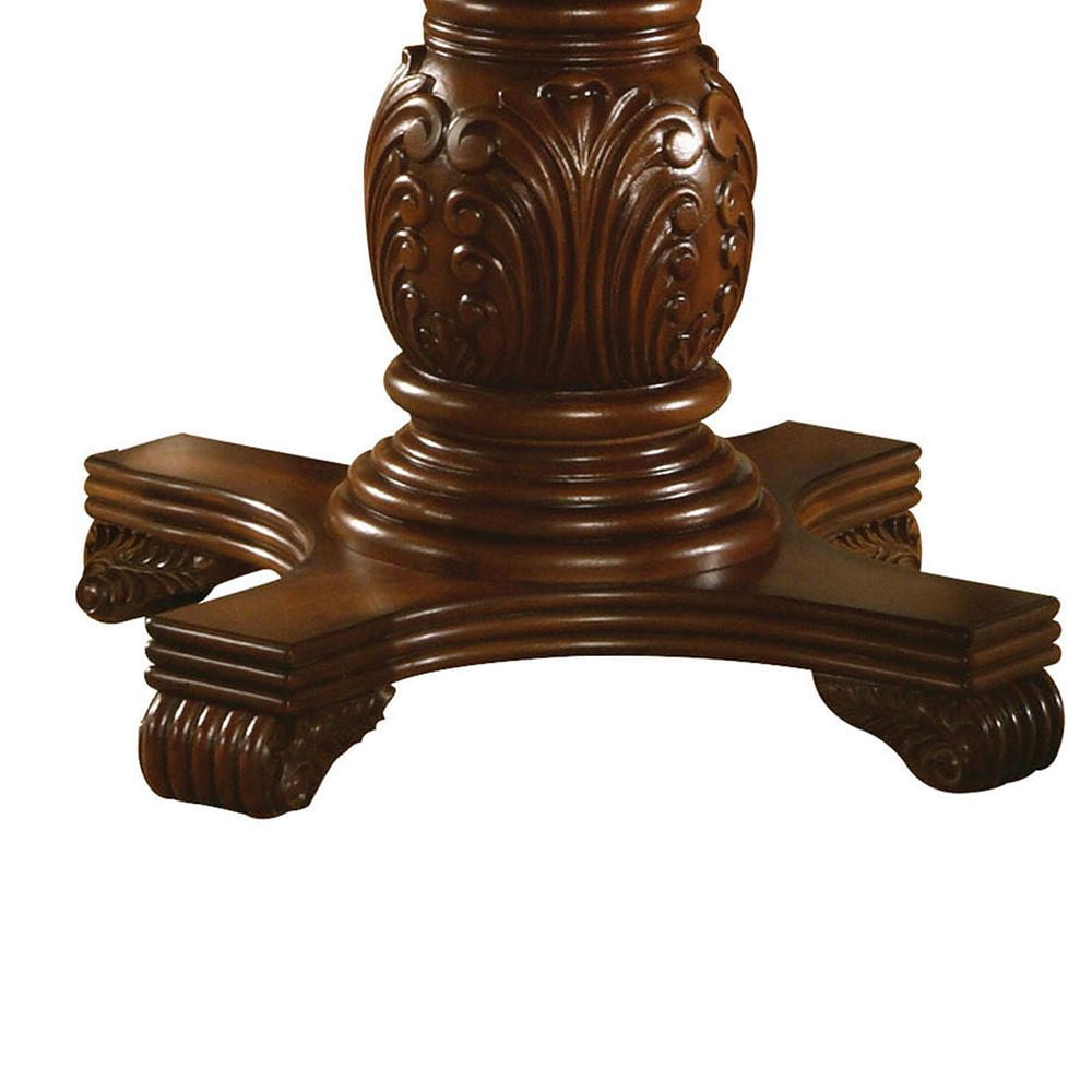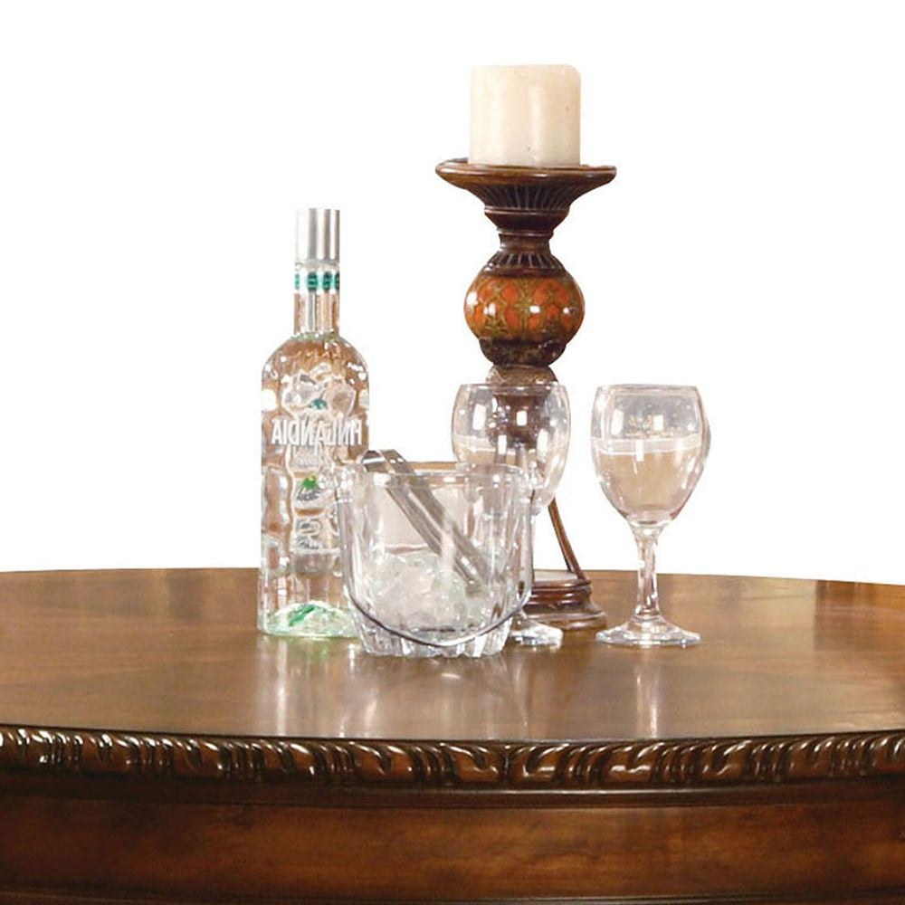 Chateau De Ville Cherry Counter Height Table The Chateau de Ville Traditional Dining Collection features elegant styling decorative carvings and a combination of hardwood and veneers. The pedestal dining table, upholstered chairs are all accented by decorative base and shell motifs. Matching Hutch & Buffet reflects all carefully selected design features as the dining collection. This collection will be the showpiece of your dining room environment. Wooden Top with Grooved Trim (NO Extension) Wooden Pedestal with Raised Floral Motifs Wood Queen Anne Leg Matching Hutch & Buffet with Light Function – Material: Wood, Poly Resin, Veneer (Wood), Composite Wood – Item Depth: 48 – Item Height: 48 – Item Width: 36 – Item Weight: 108 – General Color: Brown