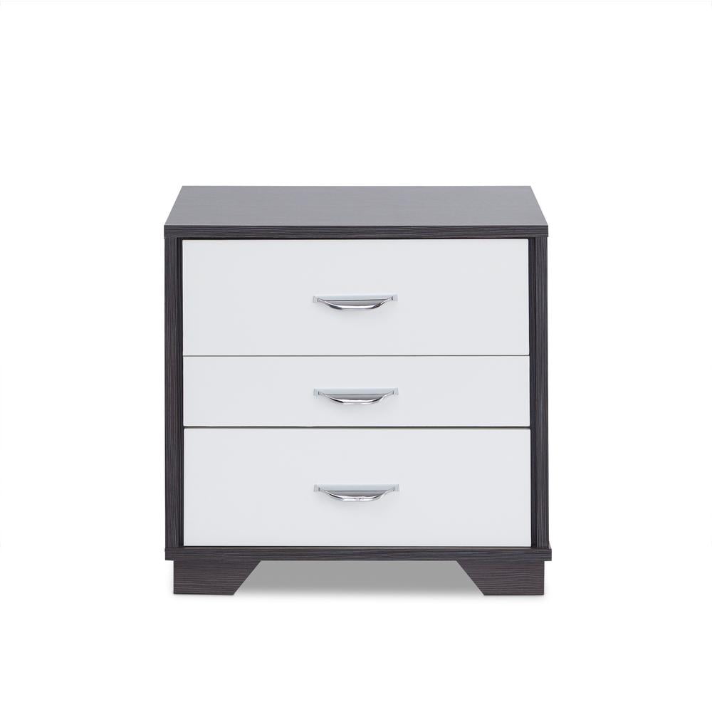 Modern and functional, the Eloy nightstand with easy metal glider runner will be a great addition to your bedroom or living room. Using a combination of espresso and white, this space-saving bedside table gives you three full-size drawers, each perfect for storing the odds and ends out of sight. This collection will work perfect as either nightstand or end table.