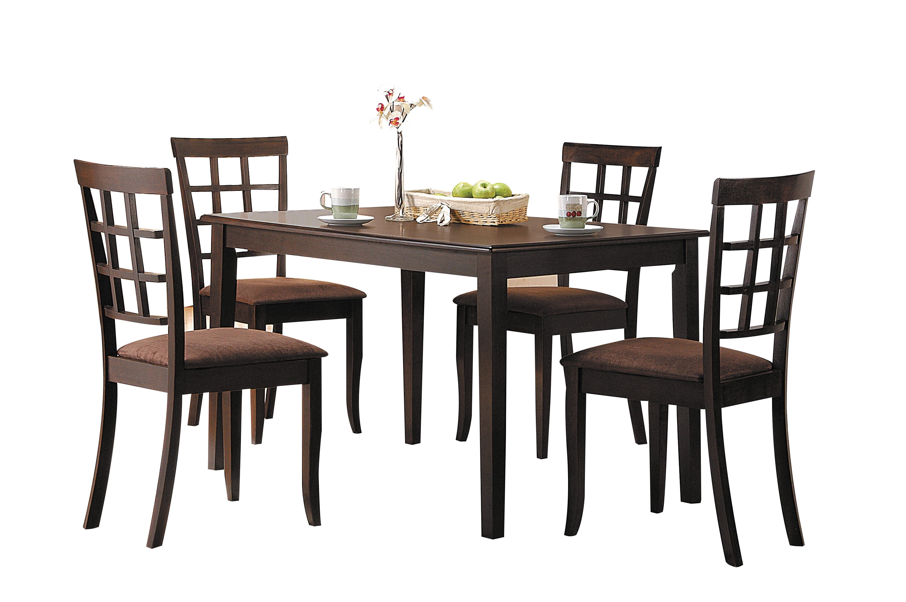 The Cardiff Side chairs are a lovely addition to your dining room, these espresso 2 side chairs have sleek square tapered legs and high back with an open grid pattern for a distinctive style. A padded seat covered in soft dark brown microfiber adds to the comfort and durability of the pieces.
