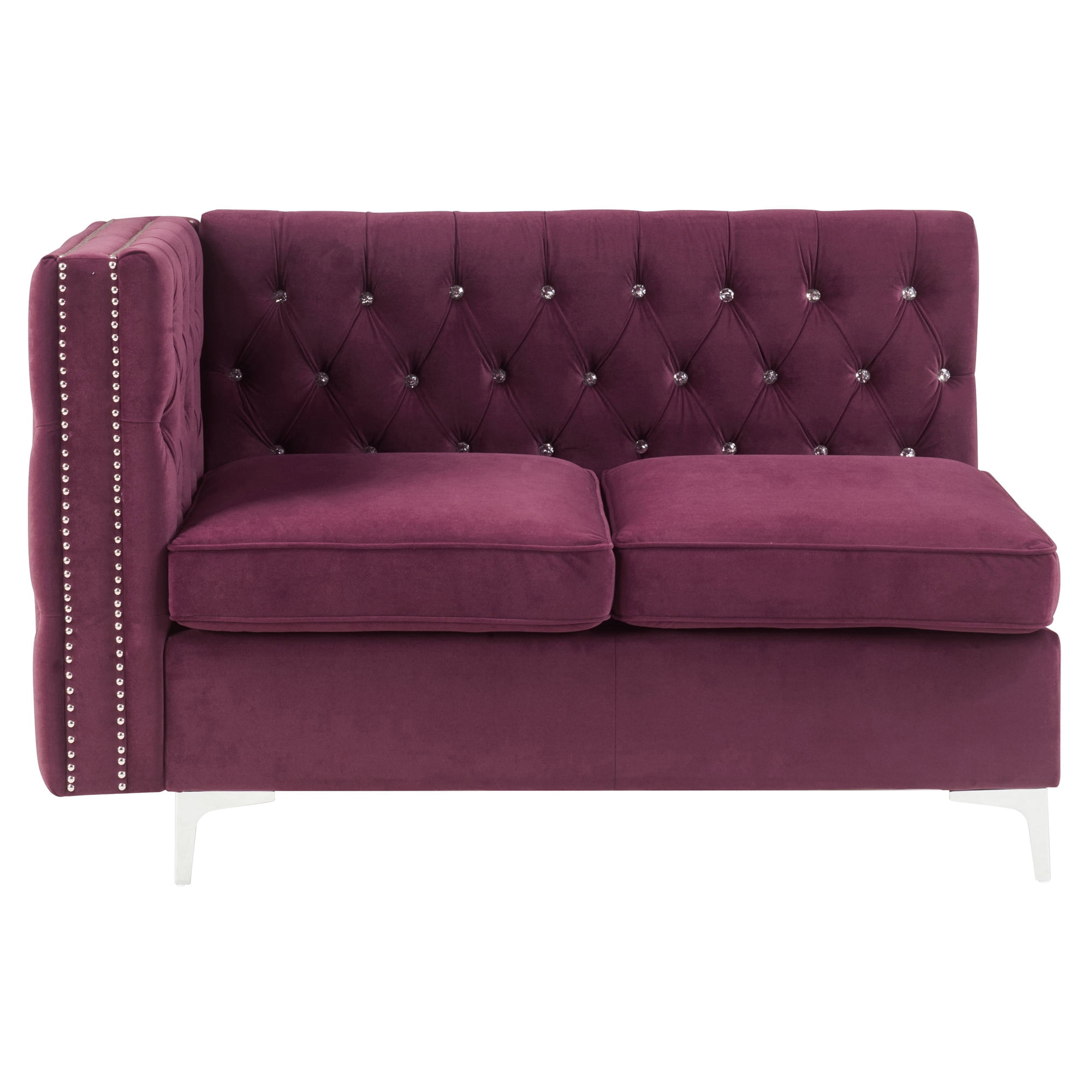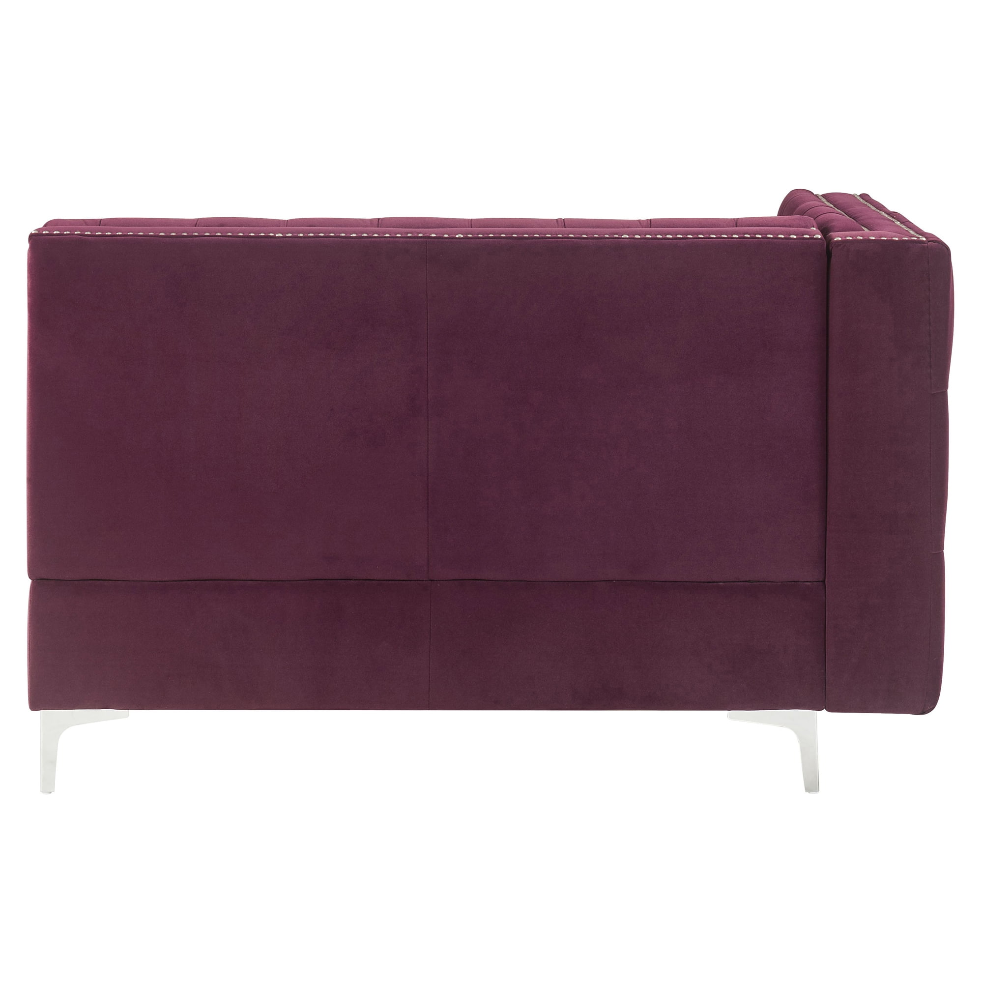 Acme Furniture Contemporary Velvet Nailhead Trim L Shaped Sectional Sofa Set Burgundy