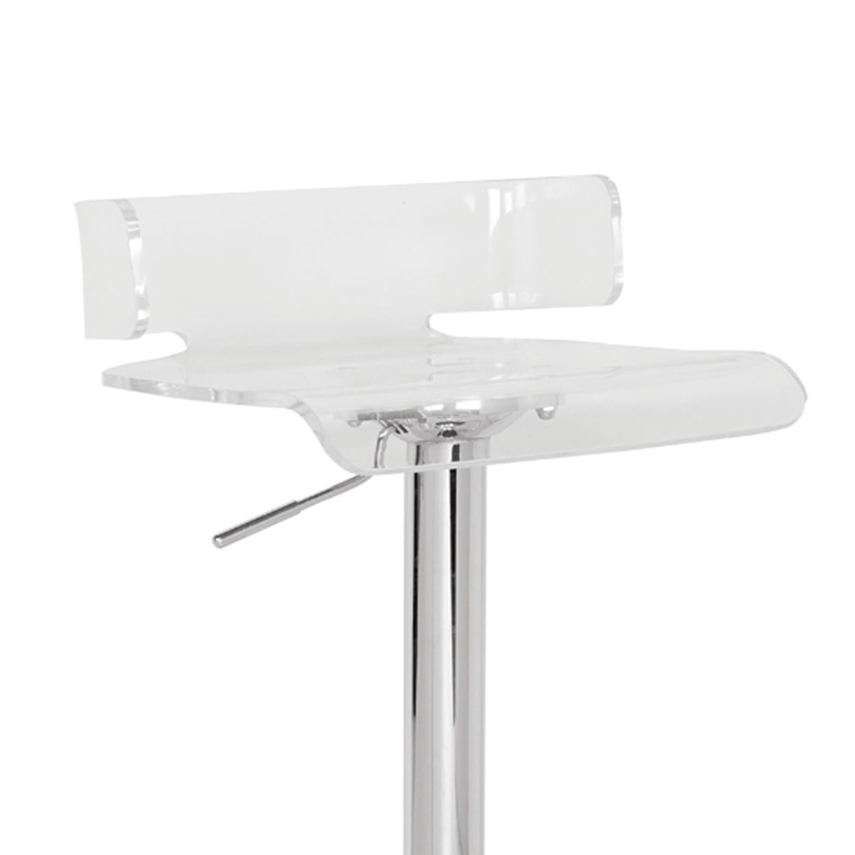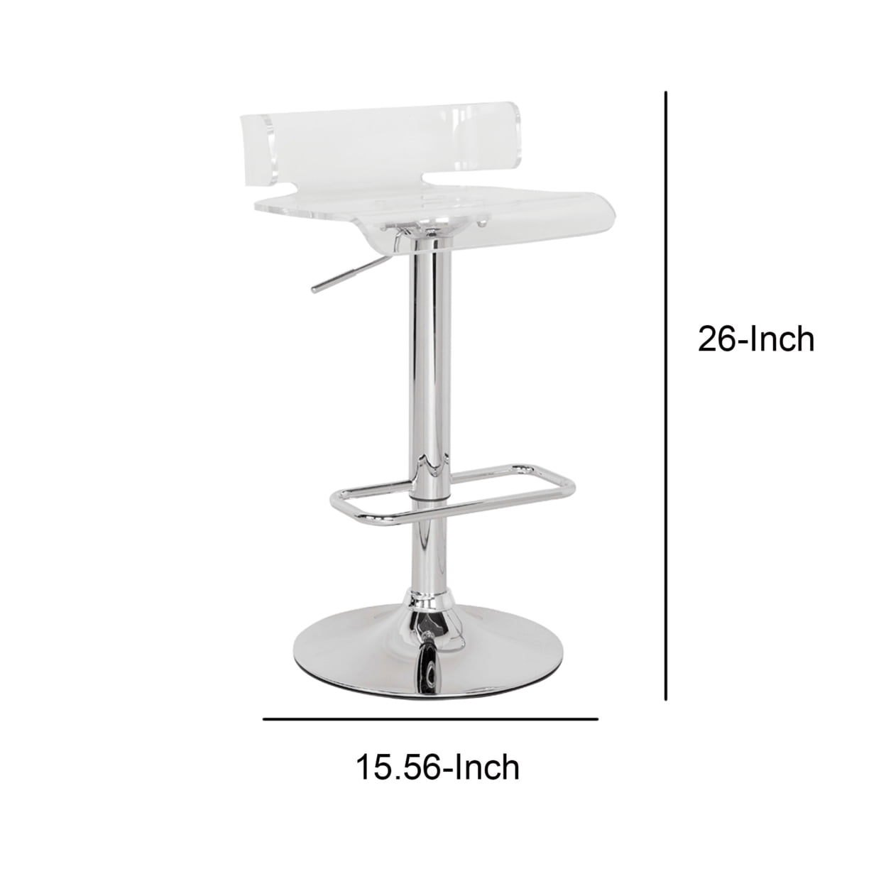 Introducing the Clear Bar Stool, ideal for elevated drinking arrangements with its perfect height. Its swivel function allows for easy turning without displacing the stool. Crafted with ABS (Acrylic Resin) and Metal, it features a 360° swivel acrylic seat and adjustable height mechanism. The chrome metal footrest enhances durability and style. With dimensions of 26″H x 15″W x 16″D and a seat height range of 22″ to 31″, this stool is both versatile and functional. Weighing 15lbs, it offers stability without sacrificing mobility. Elevate your seating experience with the Clear Bar Stool.