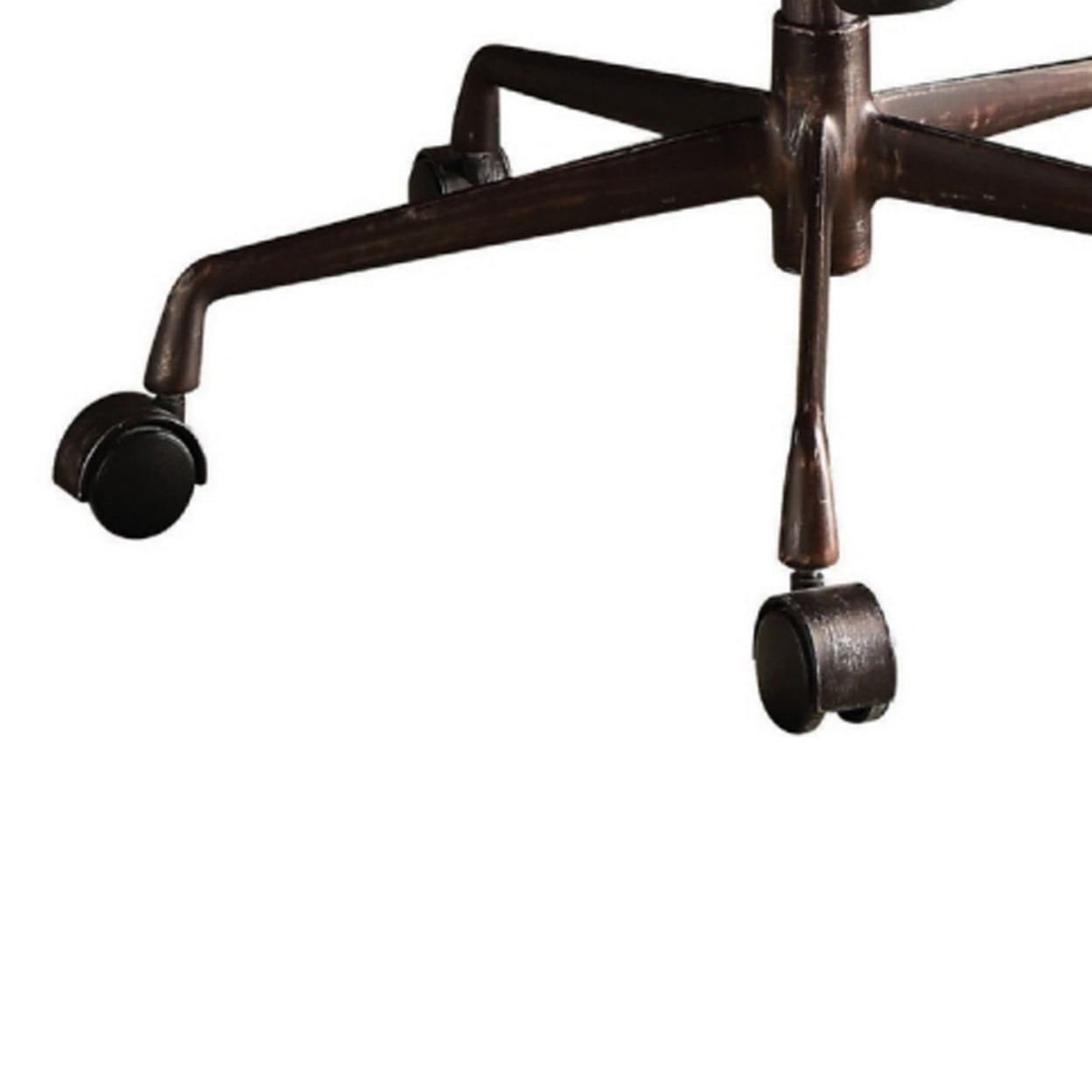 Vintage Design: Upholstered in cocoa brown leather, this chair brings a classic, vintage look to any office environment. Swivel Seat: Full 360-degree swivel for ease of movement and convenience during multitasking. Adjustable Height: Equipped with a pneumatic lift system, allowing seat height adjustment from 18″ to 23″ for tailored comfort. Padded Back and Seat: Features a padded backrest and seat cushion, providing comfortable support for extended periods of sitting. Sturdy 5-Star Base: Built on a robust metal 5-star base with rolling caster wheels, ensuring stability and smooth mobility. Seat Height: Adjustable from 18″ to 23″