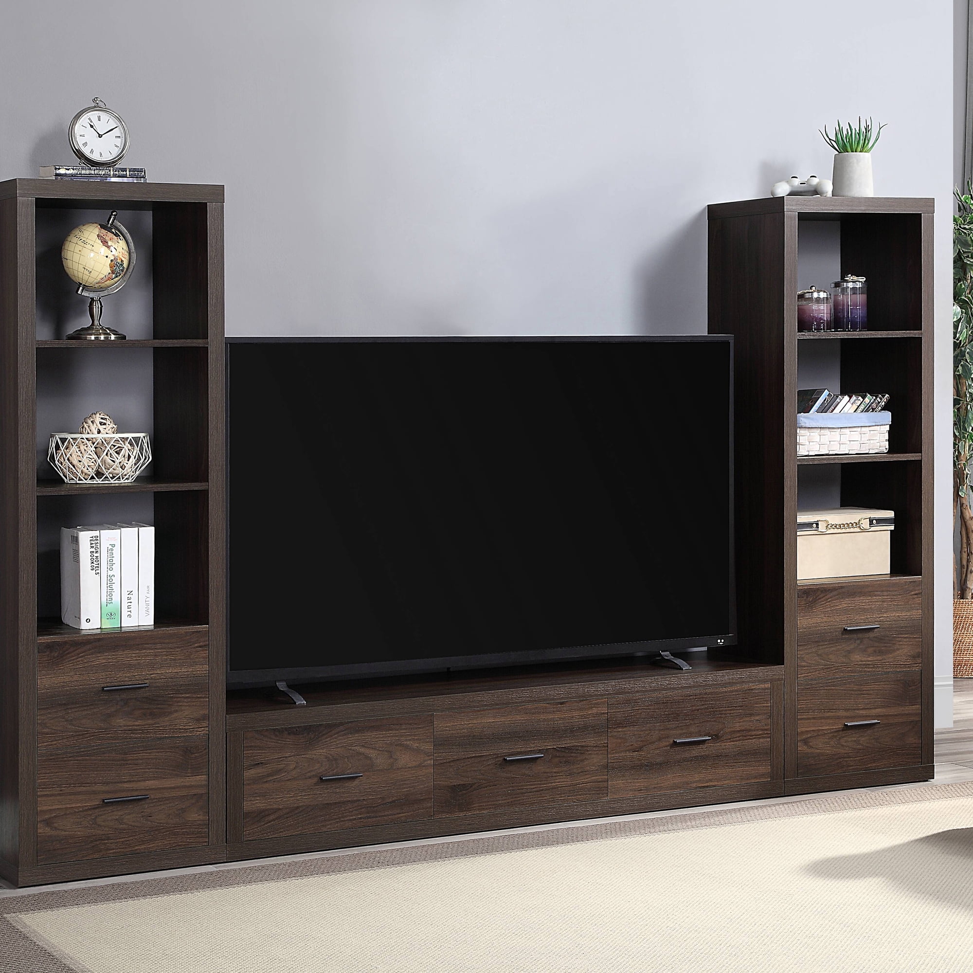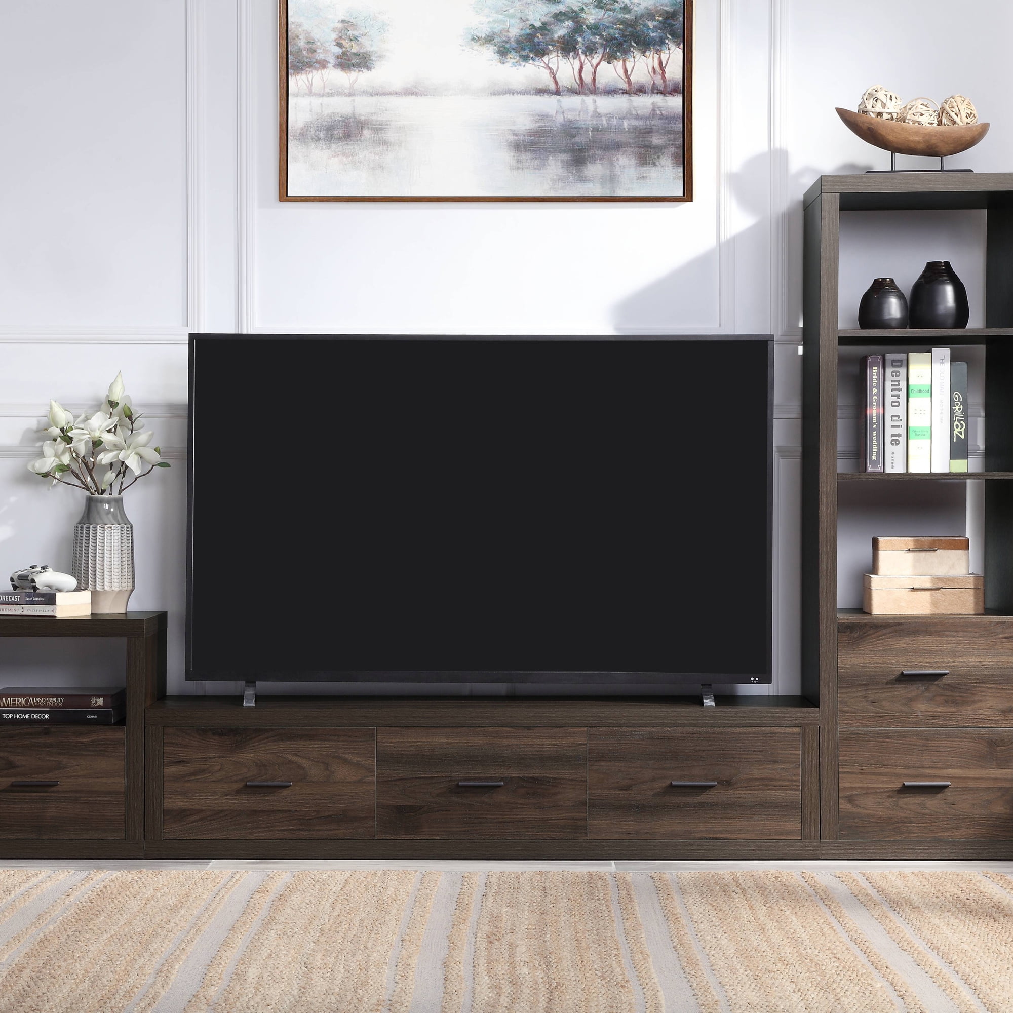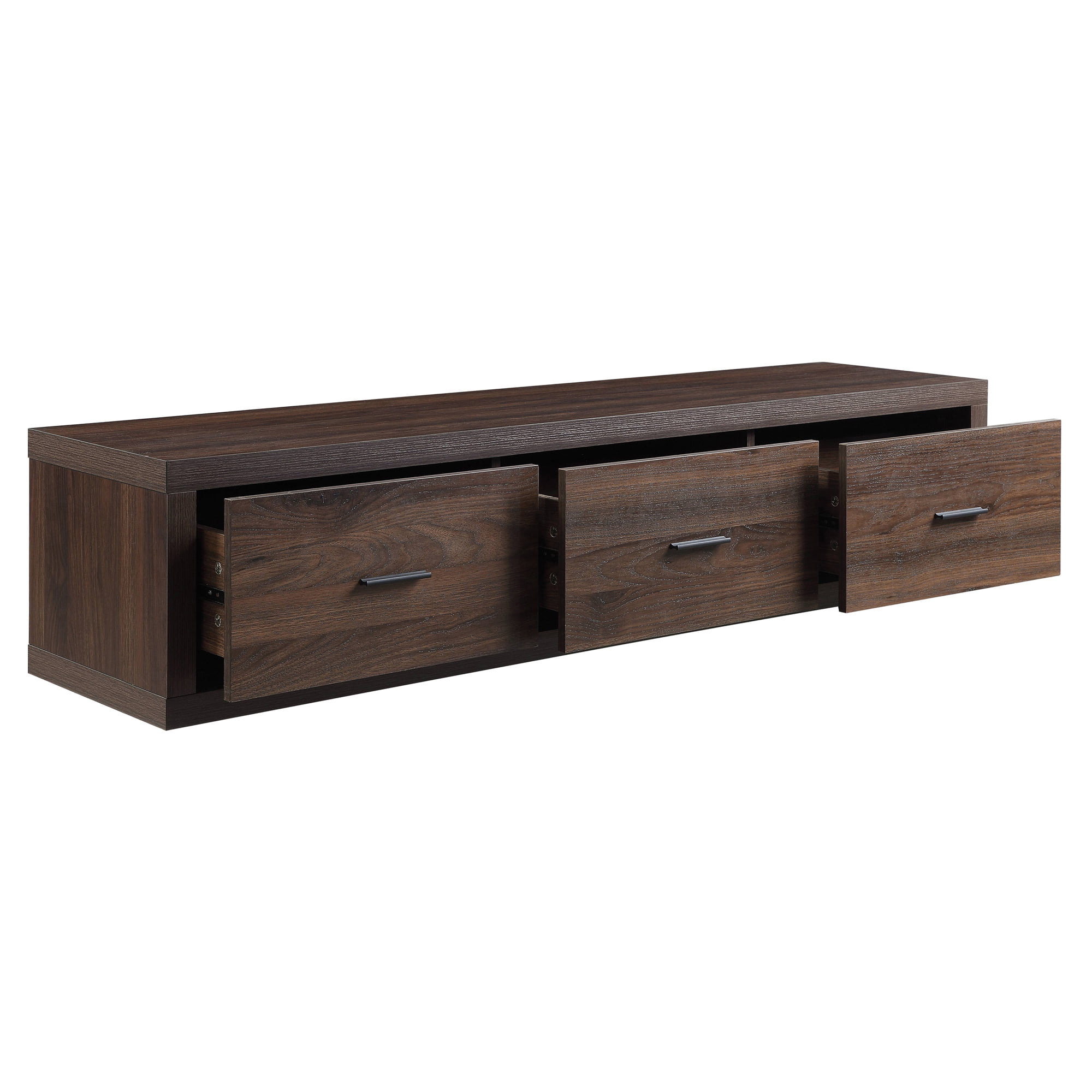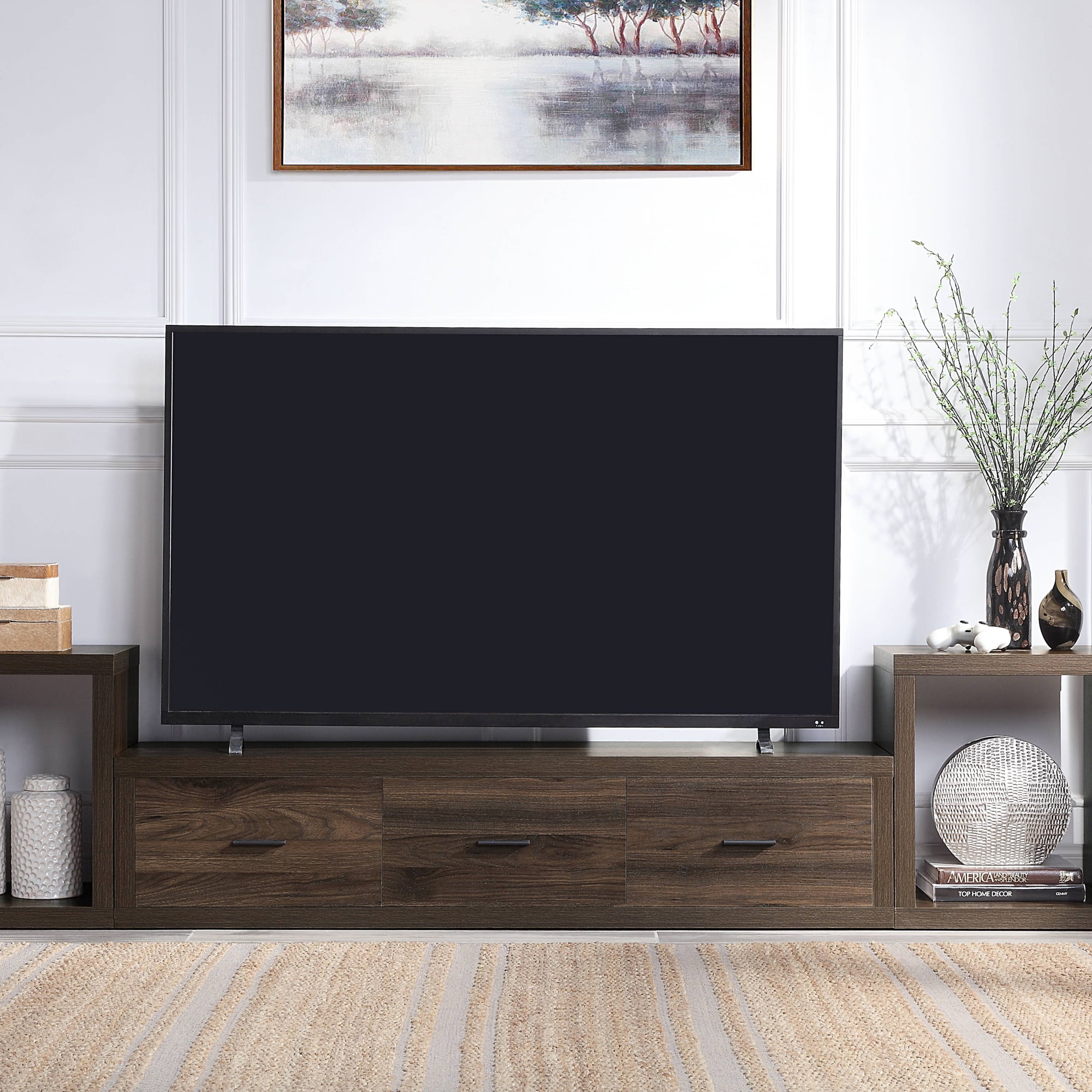 The Harel TV stand provides a clean, contemporary addition to your home decor. This amazing TV stand is perfect for most flat screens. The Harel TV stand is the ideal blend of style and functionality, with three large storage drawers. This versatile piece of furniture provides space to store your gaming consoles and accessories, components for your television, DVDs, blu-rays, board games, books, or anything else you need to stow away to keep your space clutter-free. The sleek walnut finish complements a variety of interior decor styles. The TV stand provides the perfect display and storage solution for any room in your home.