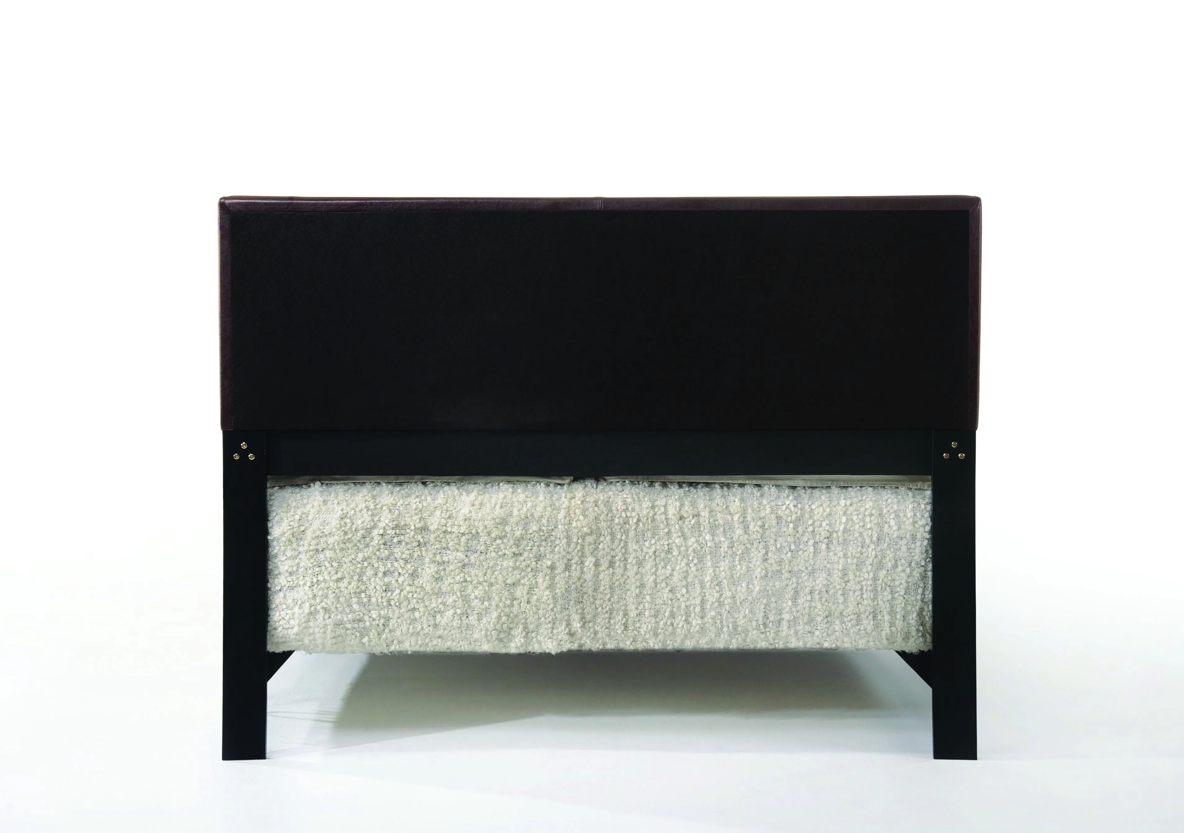 Box Spring Required 3 Slats Panel Bed Padded: Brown PU Low Profile Footboard Wooden Block Legs Clearance Between Floor & Rail: 3″H Clearance between Floor & Slat: 9″H Dimension: 82″L x 57″D x 47″H Weight: 60 Lbs