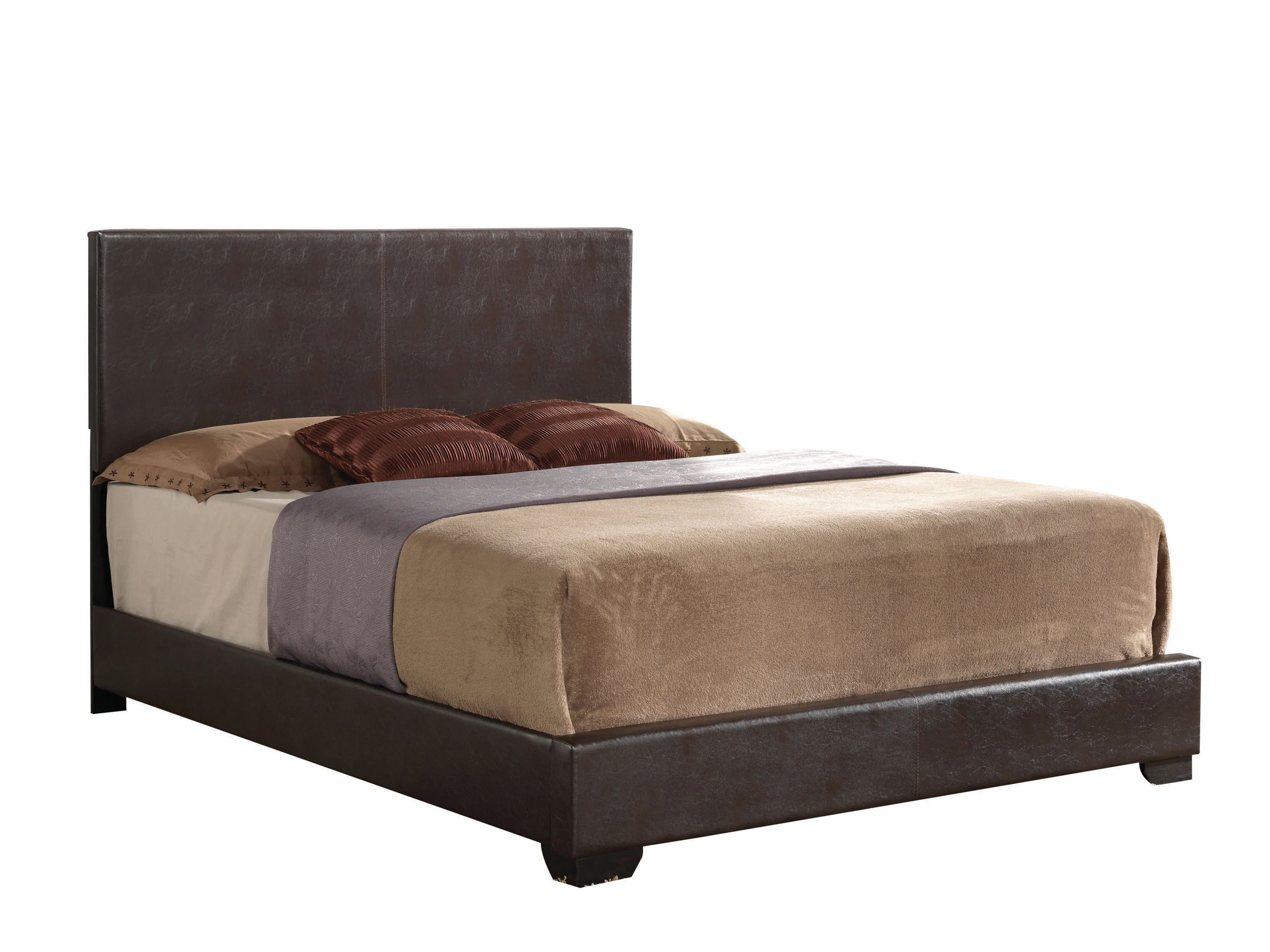 ACME Ireland Full Panel Bed in Brown Faux Leather , Multiple Sizes