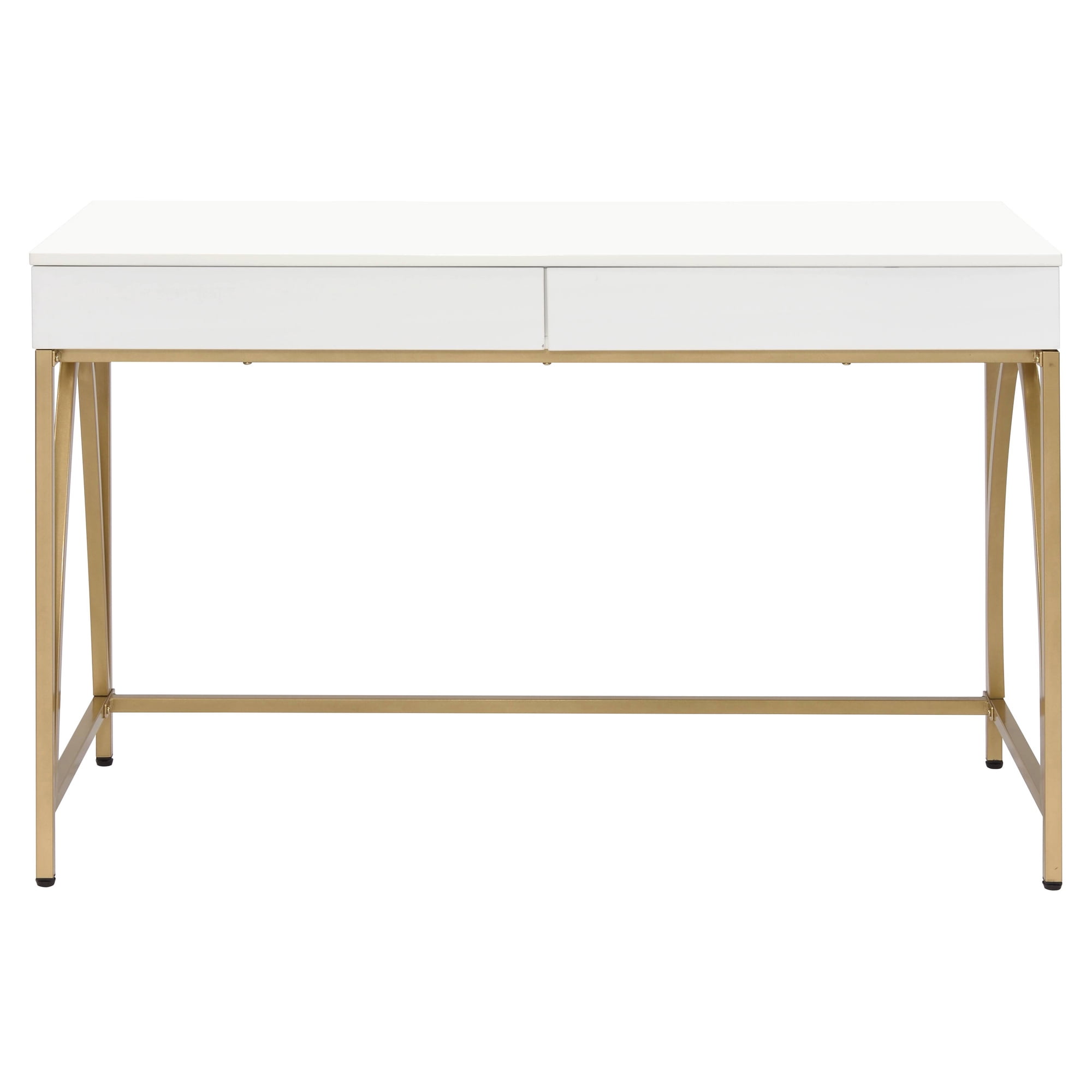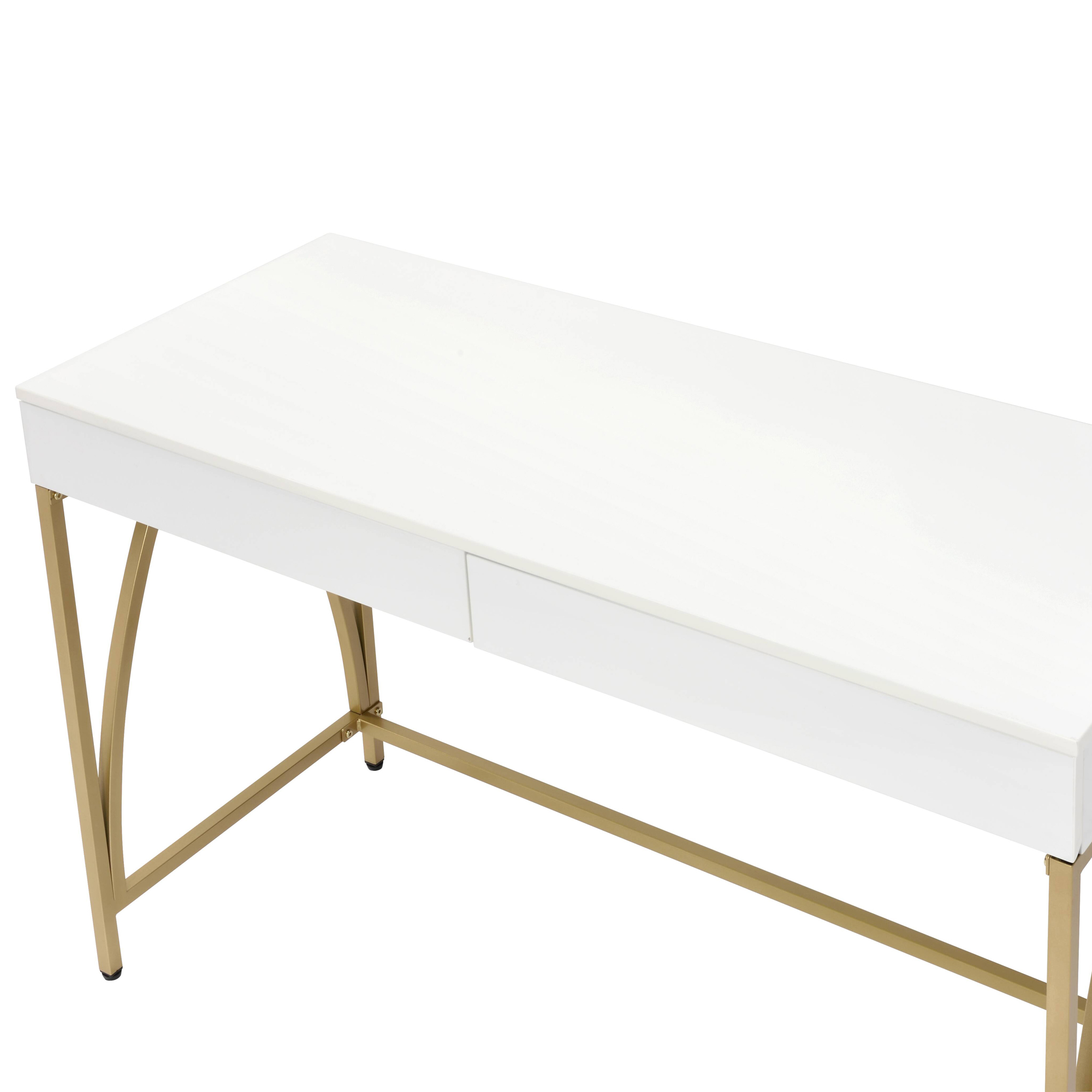 The Lightmane creates an environment you are comfortable to work at home. This writing desk is crafted with selected wood in white high gloss finish top and metal straight legs in gold finish. Also 2 storage drawers were included to store books, notebooks and pens for easy access while you work.