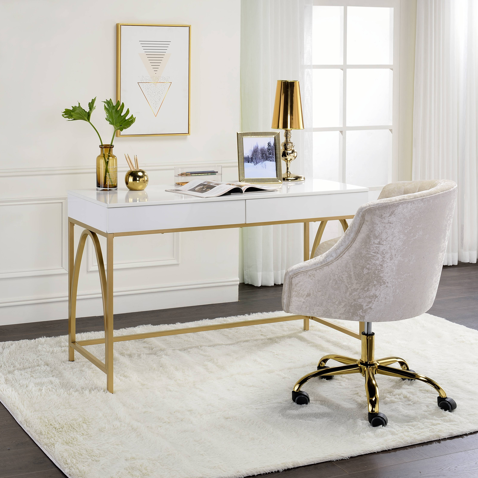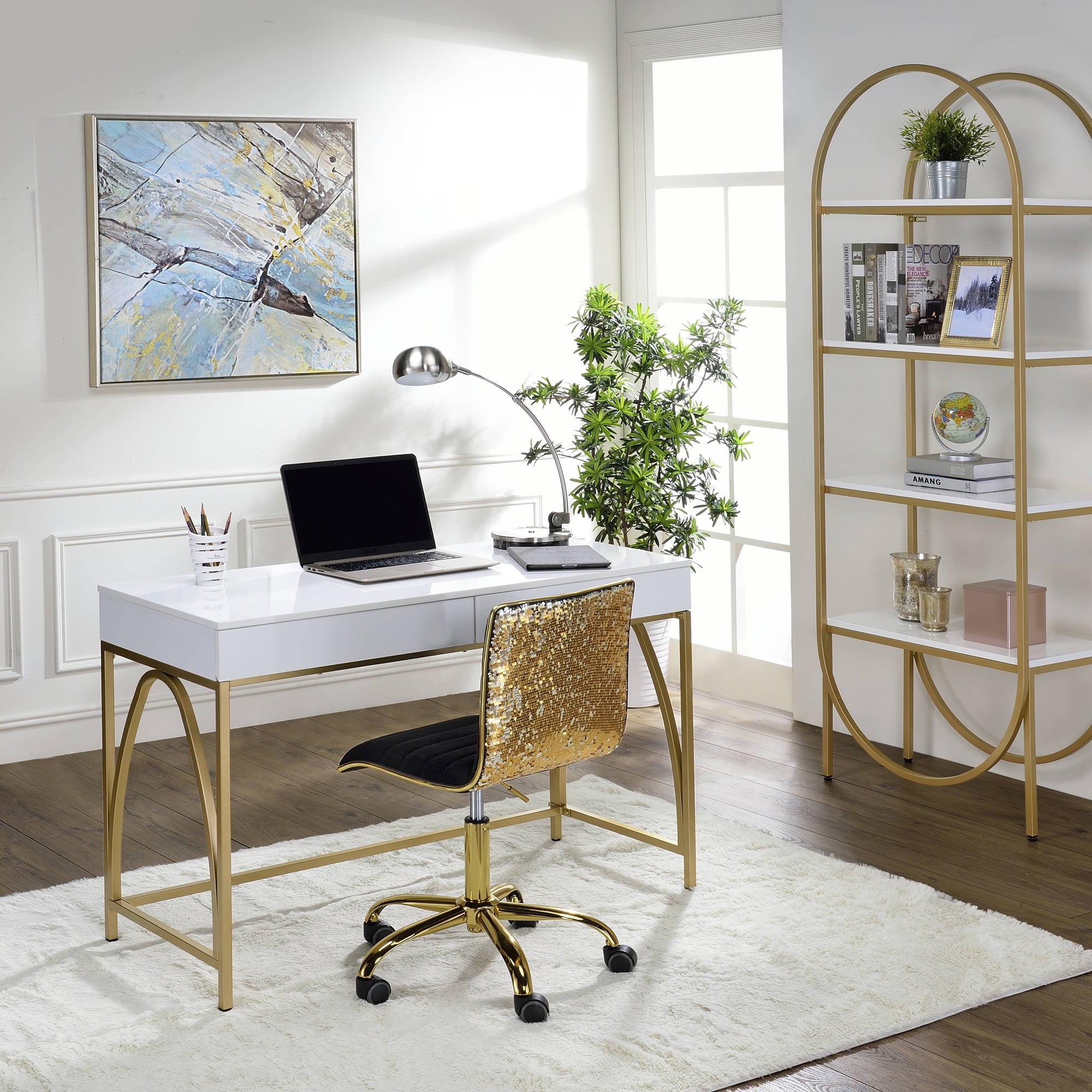 ACME Lightmane Writing Desk in White High Gloss and Gold