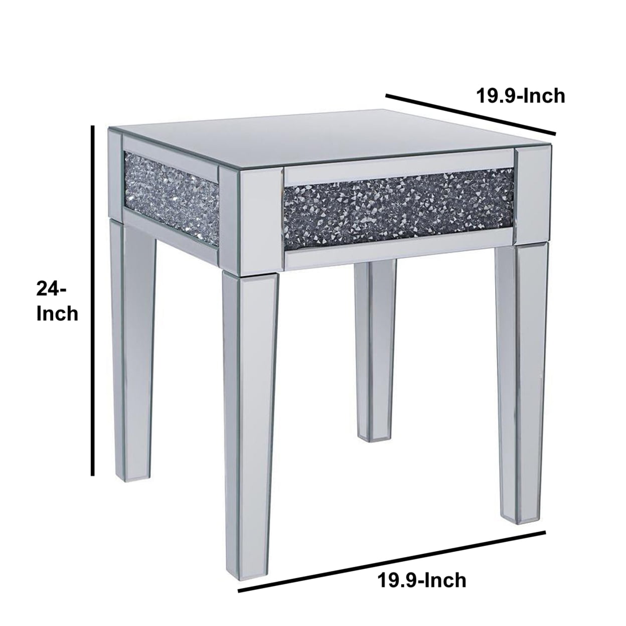 ACME Noralie Square Mirror Top End Table in Mirrored and Faux Diamonds