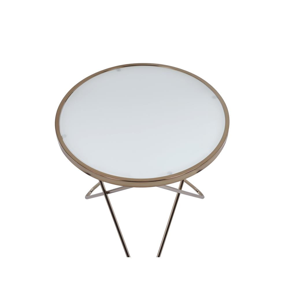 ACME Valora Round Glass Top End Table in White Glass and Gold