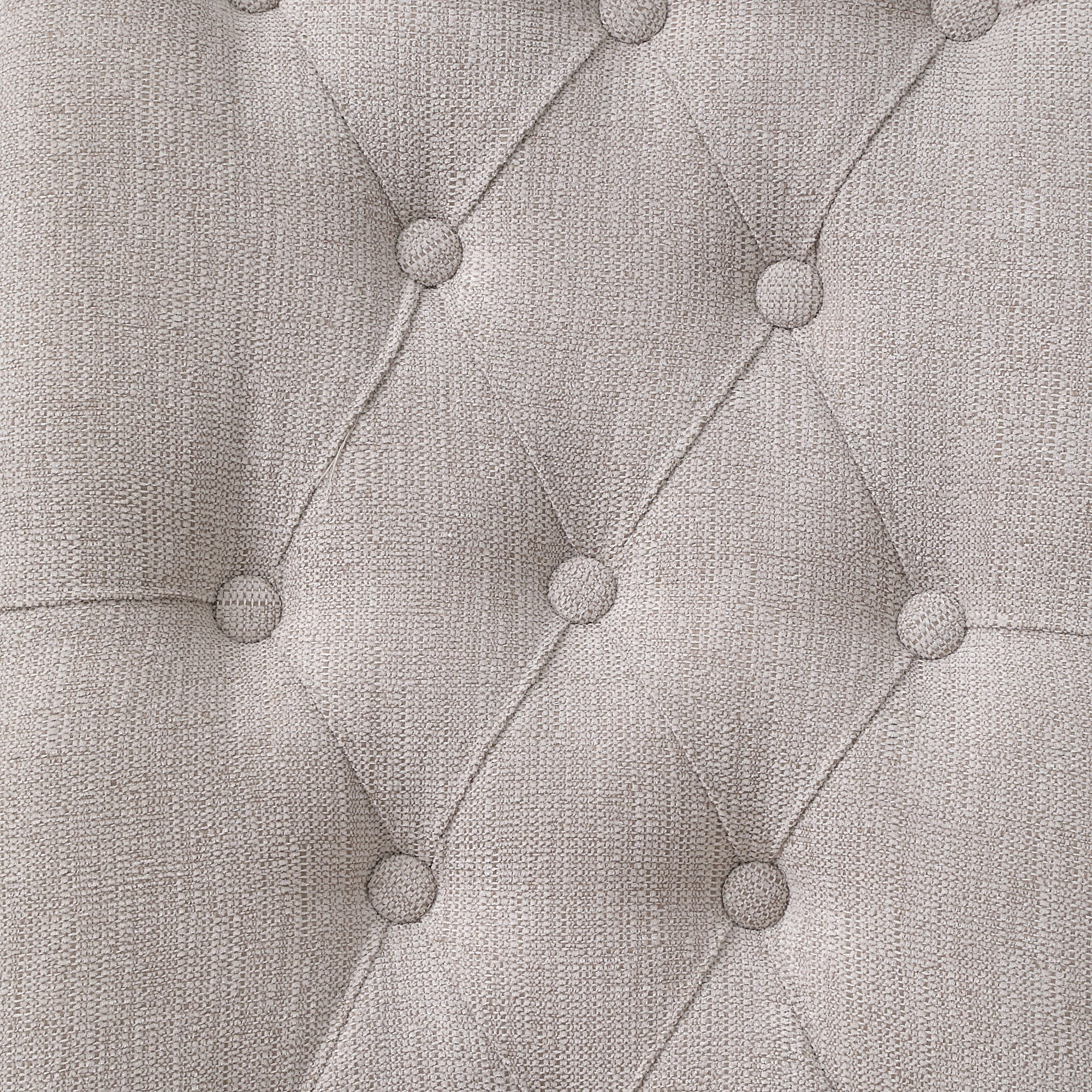 Upholstered seat and back Button tufted back Wooden tapered leg Floor clearance: 15″ Cushion thickness: 5″ Weight capacity: 200 lbs Assembly required
