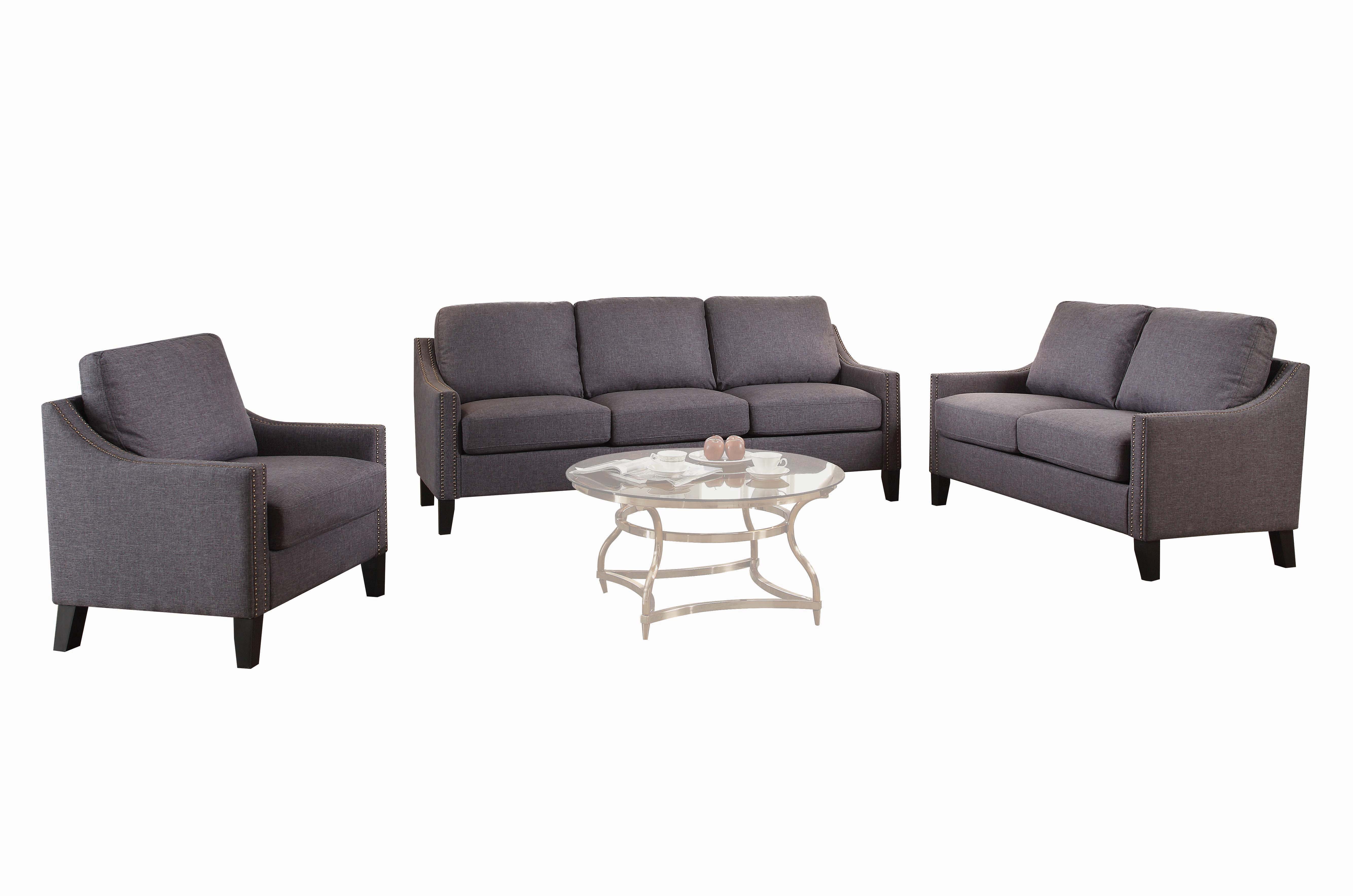 Finish: Gray Materials: Linen, Wood Frame, Foam Contemporary Pocket Coil Seating Sloped Arms Nailhead Trim