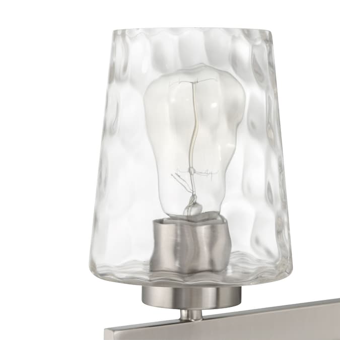 - With clear water glass shades and a brushed nickel finish, this fixture perfectly complements beach and ocean themes.