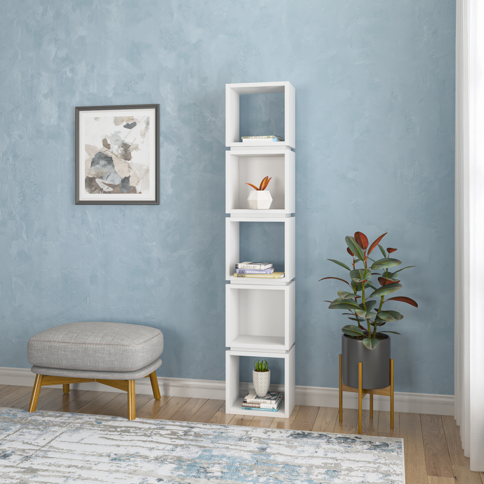 Ada Home Decor 5 Shelf Bookcase Multiple Tier Open Corner Shelf Narrow Book Shelves, White
