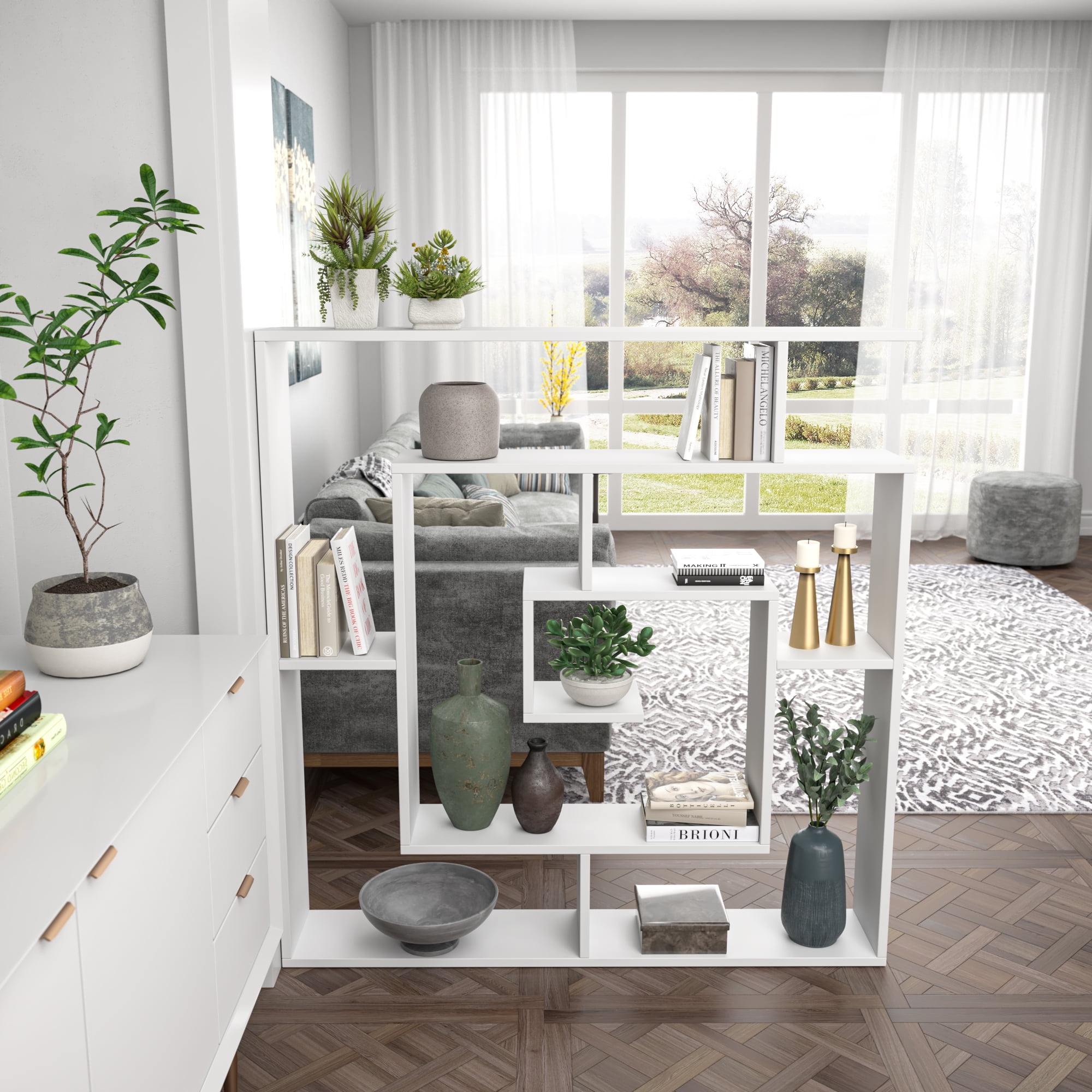 Ada Home Decor Briscoe 4 Tier Open Shelf Bookcase Modern Geometric Book Shelves, White