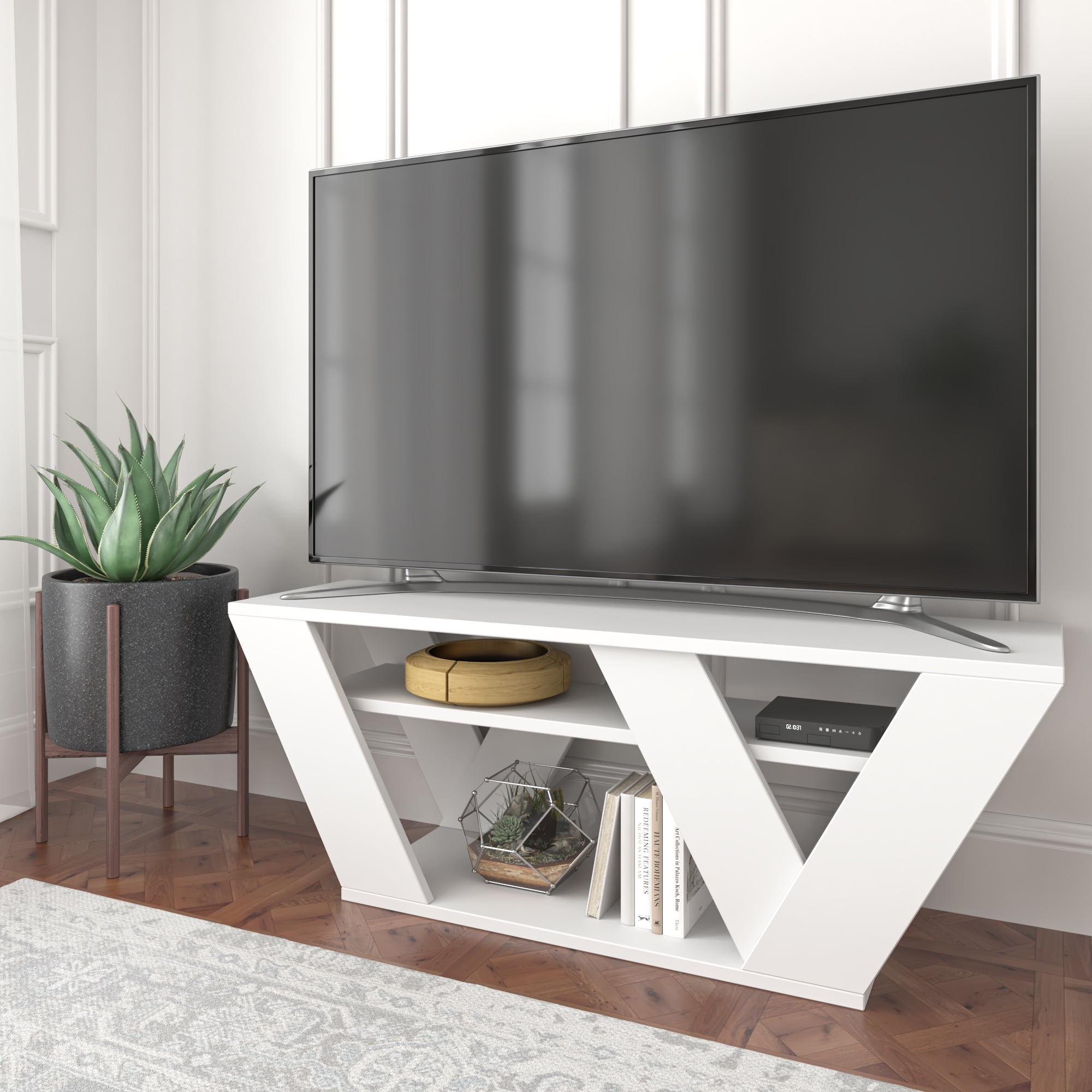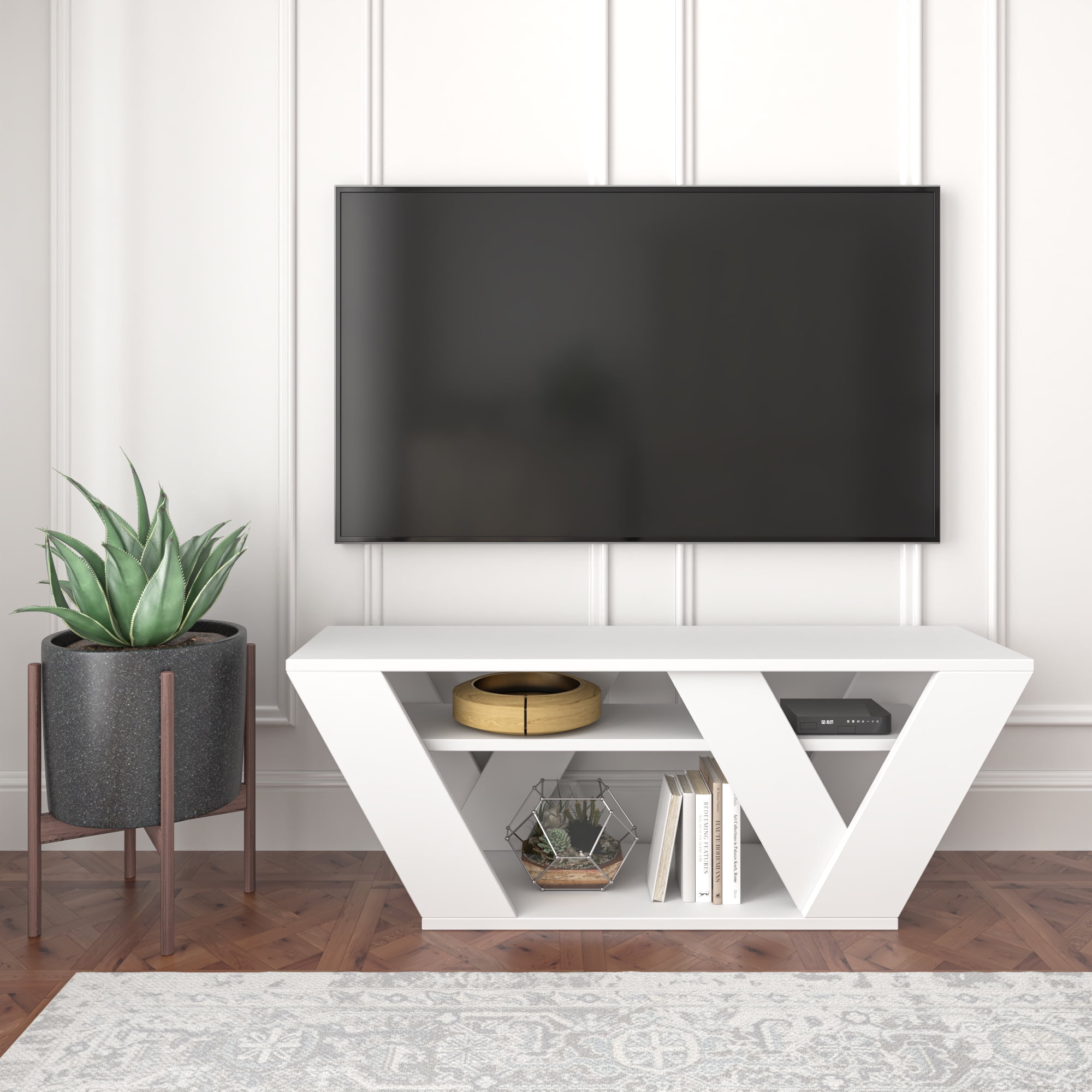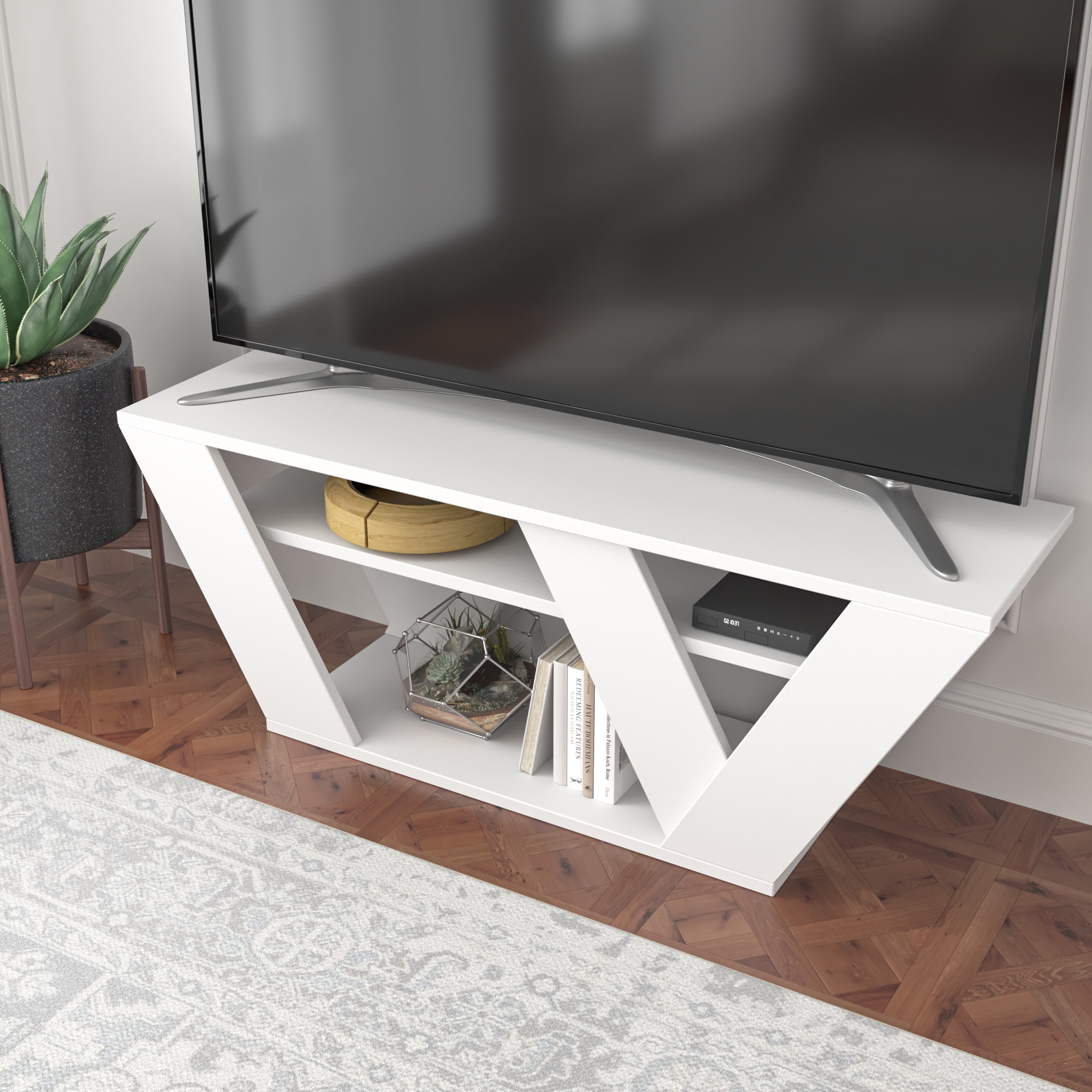 Ada Home Decor Furniture for TVs up to 48″ 2 Tier Open Shelf White Todd Modern TV Stand