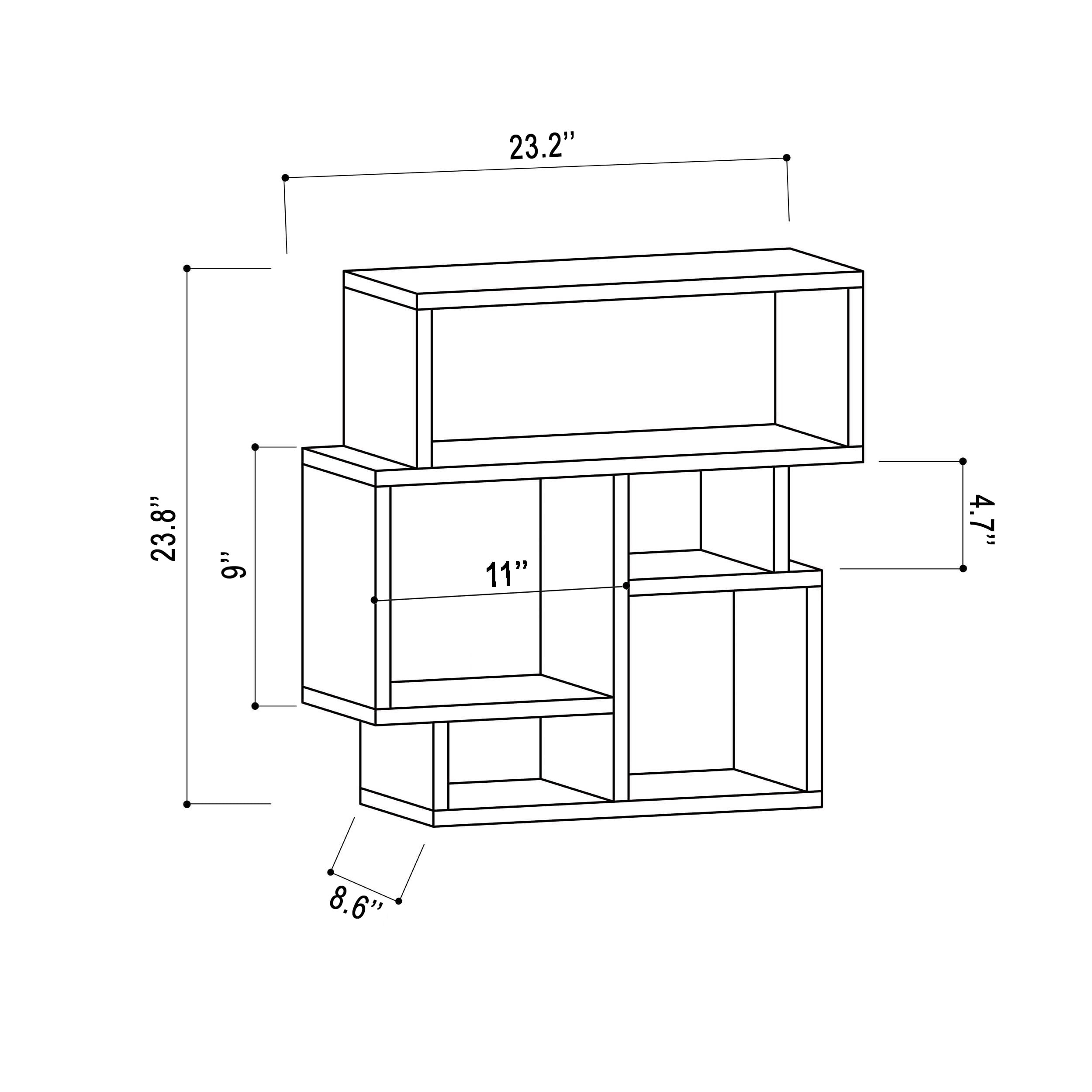 Created with durable materials, each shelf has a suggested weight of up to 20 lbs of your favorite books, pictures, and ornaments Guaranteed simple and quick assembly with included hardware and guided instructions Made with compressed engineered wood for strength and durability, with a long-lasting melamine finish on all sides that is moisture and stain resistant Schultz end table suitable for bedroom, guest room, dining room, den and living room Perfectly blends with any style of home decor A beautiful modern style with a primary white shade Care Instructions: Wipe with a damp cloth Color: White Assembled Dimension: 23.82” H x 23.23” W x 8.66” D Assembled Weight: 22.53 lbs Please Note: Due to differences in computer monitors, some product colors may vary slightly.